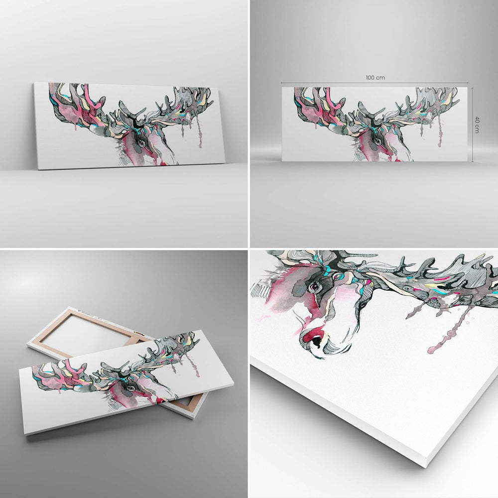 Panorama Bilder auf Leinwand 100x40cm Leinwandbild Moose Bunt Kopf Abbildung Gross Wanddeko Bild Sch