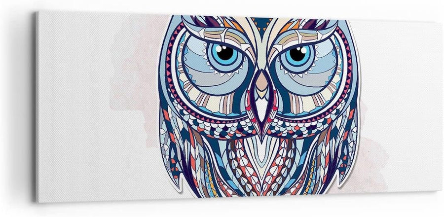 Panorama Bilder auf Leinwand 100x40cm Leinwandbild Owl aztekische Tierwelt Grafik Gross Wanddeko Bil