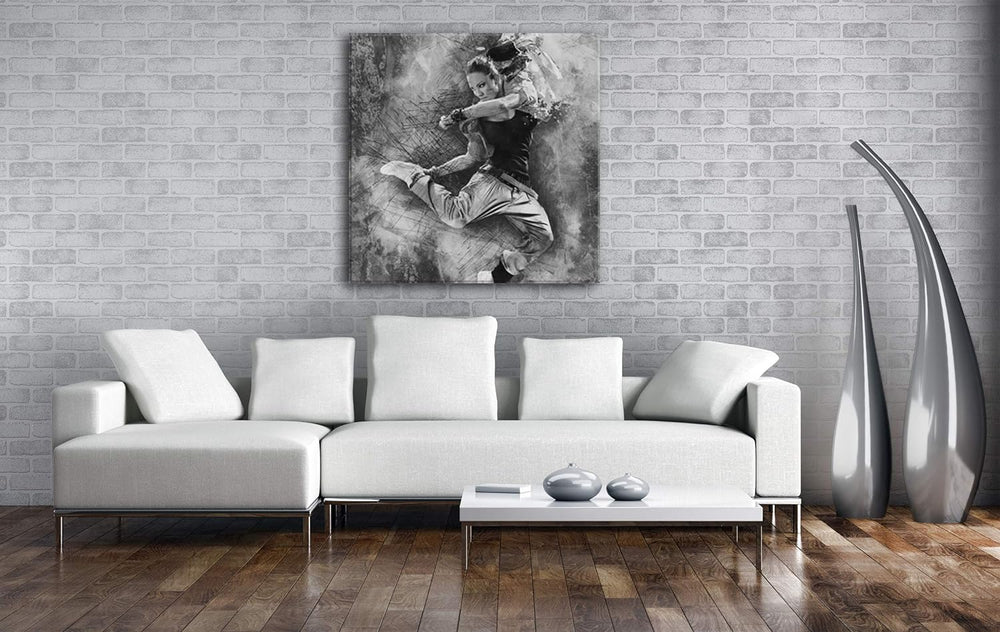 deyoli Illustration springende Frau Format: 70x70 Effekt: Schwarz&Weiss als Leinwandbild, Motiv fert