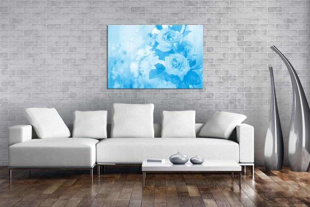 deyoli Illustration einer Rosa Rose Format 80x60 Effekt: Monocrome Blau als Leinwandbild, Motiv fert