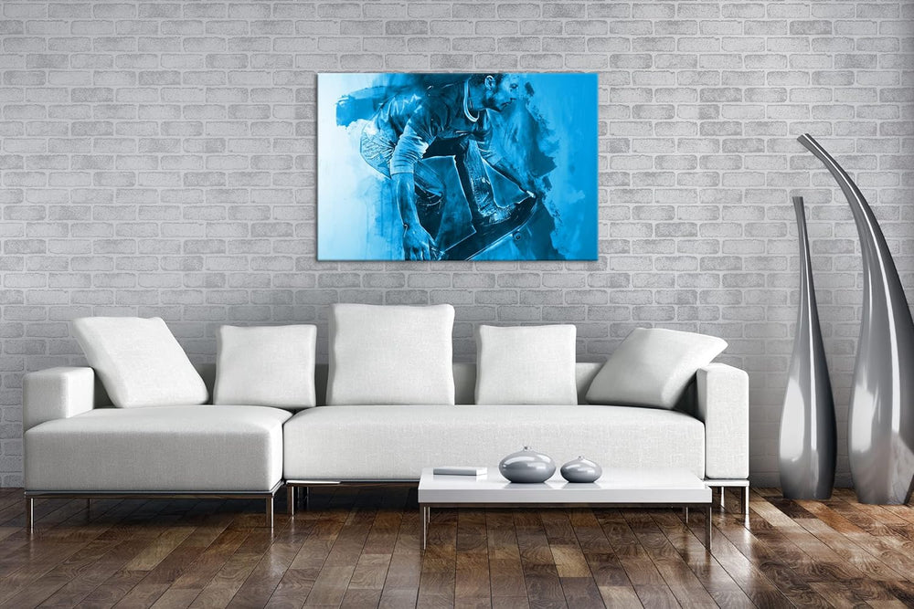 deyoli Illustration Skater Format: 80x60 Effekt: Monocrome Blau als Leinwandbild, Motiv fertig gerah
