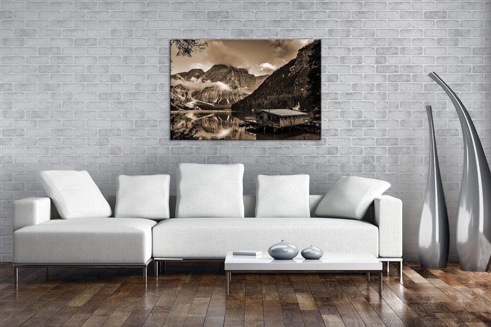 deyoli idyllischer Ort am Pragser Wildsee Effekt: Sepia, Format: 80x60 als Leinwandbild, Motiv ferti