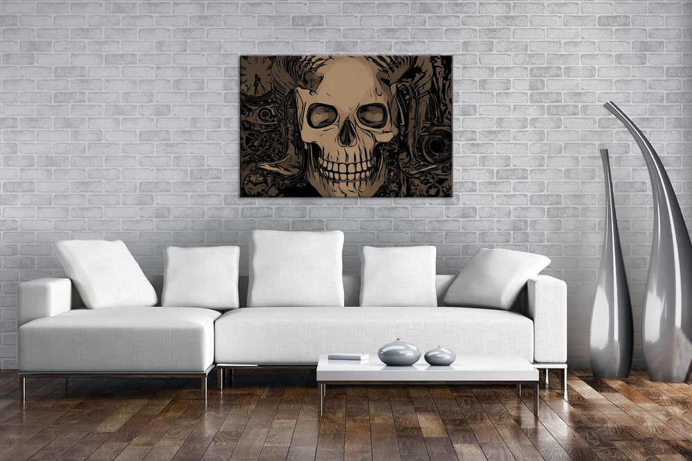 deyoli Illustration eines Demonenschädels Format: 80x60 Effekt: Sepia als Leinwandbild, Motiv fertig