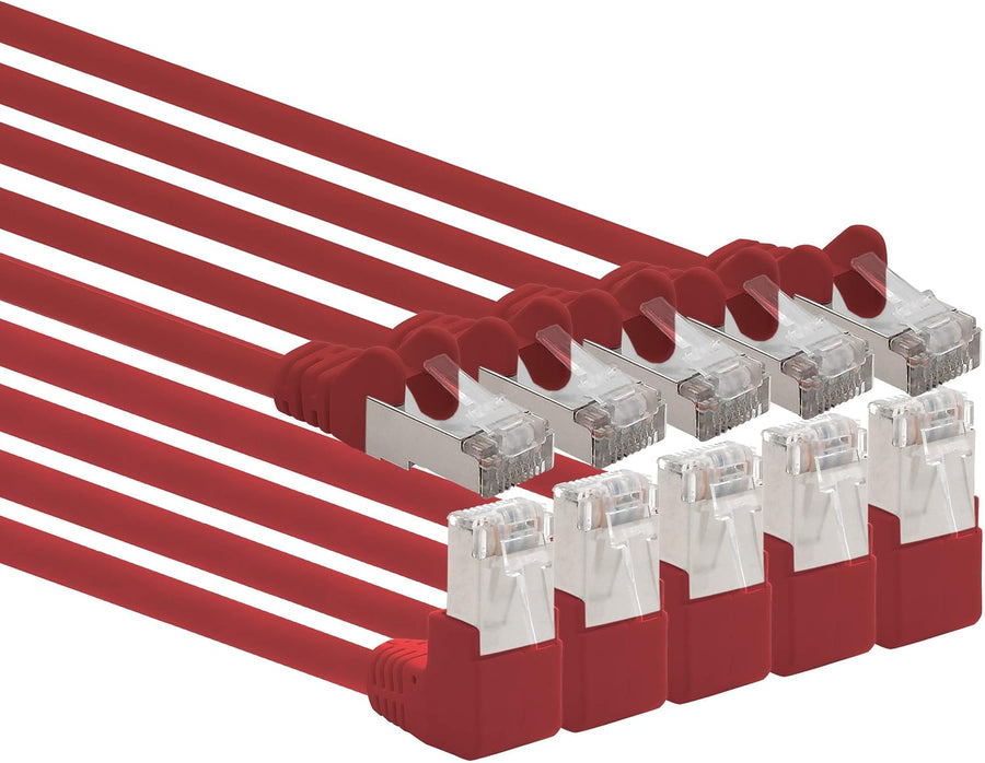 1aTTack.de 366276 Cat.6 Netzwerkkabel Winkel 90 Grad 10m - rot - 5 Stück - Cat6 Patchkabel (SFTP PIM