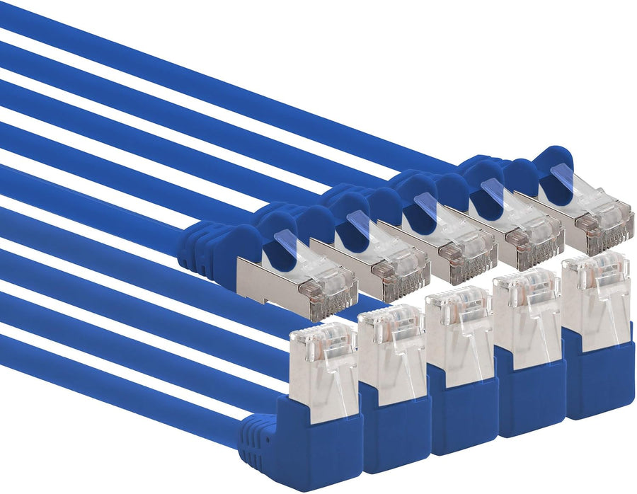 1aTTack.de 366266 Cat.6 Netzwerkkabel Winkel 90 Grad 10m - blau - 5 Stück - Cat6 Patchkabel (SFTP PI
