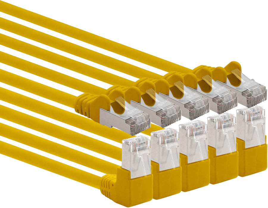 1aTTack.de 366270 Cat.6 Netzwerkkabel Winkel 90 Grad 10m - gelb - 5 Stück - Cat6 Patchkabel (SFTP PI
