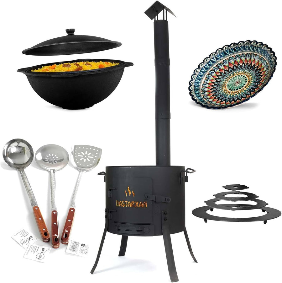 Ø40 Uchag 2mm stahl Utschak mit Abzugsrohr Utschag Campingofen 15L Gusseisen Kazan mit Gusseisen Dec