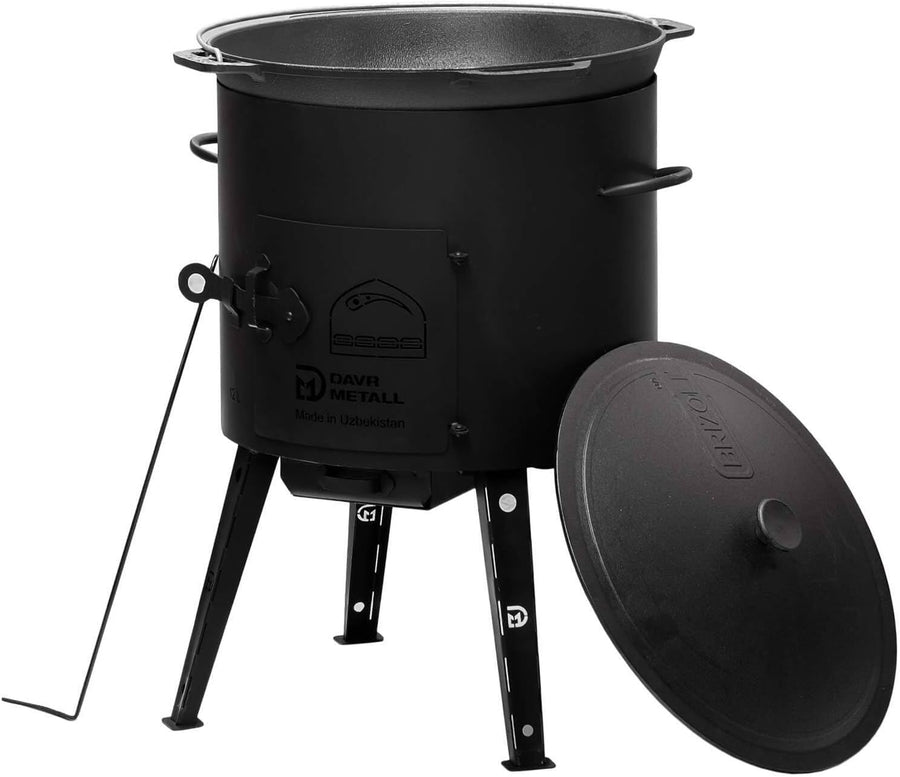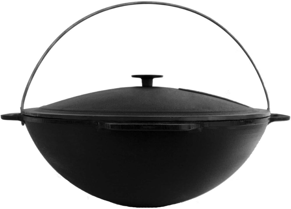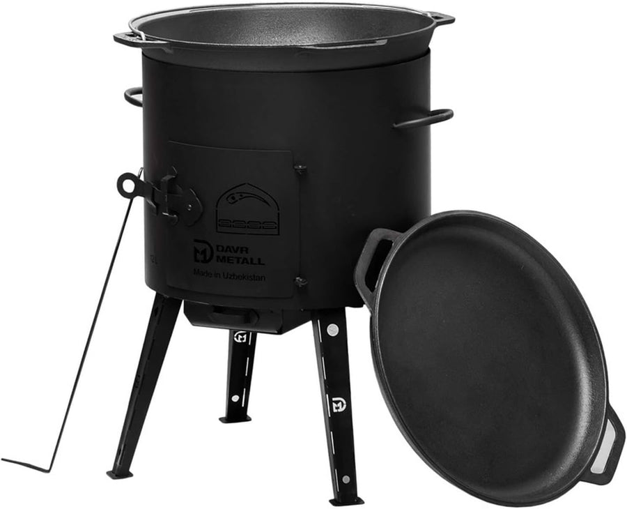 Ø40 Uchag 2mm stahl Utschak Utschag Campingofen 15L Gusseisen Kazan mit Gusseisen Deckel-Bratpfanne