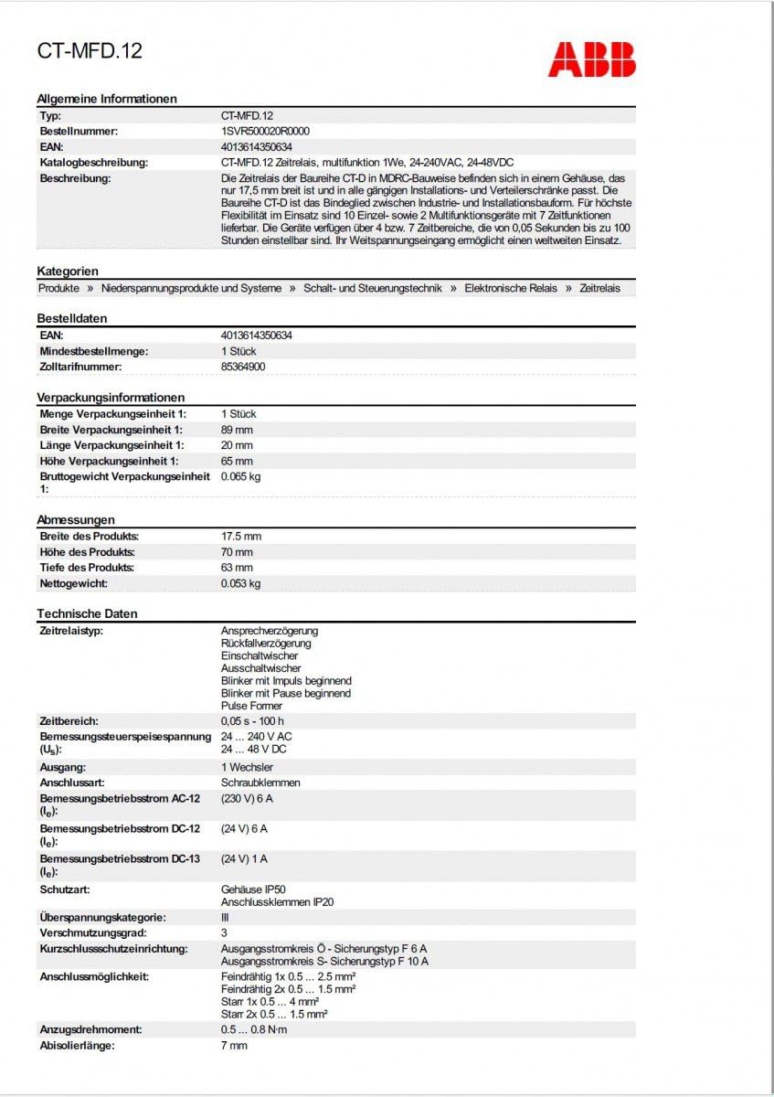 Multifunktions-Zeitrelais 1W ABB CT-MFD.12