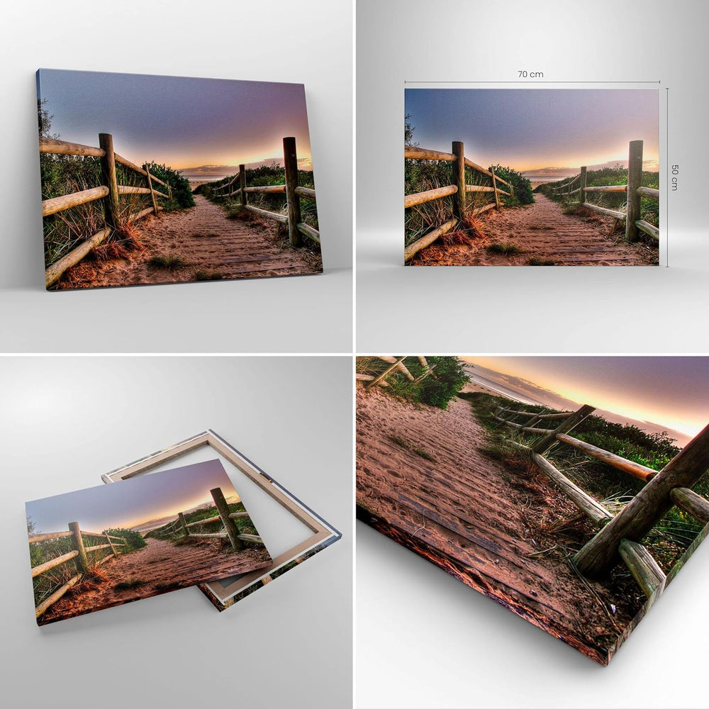 ARTTOR Bilder auf Leinwand Pfad Landschaft Himmel Leinwandbild 70x50cm Wandbilder Dekoration Wohnzim