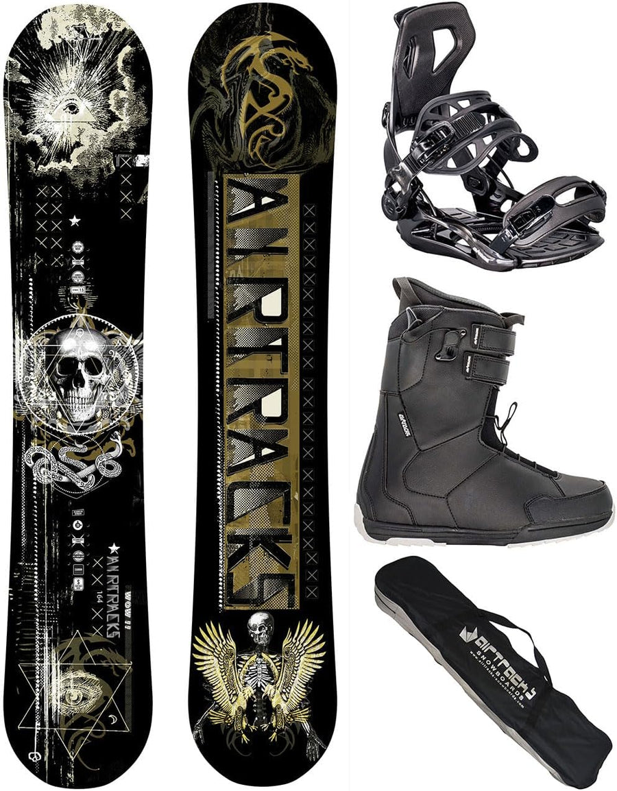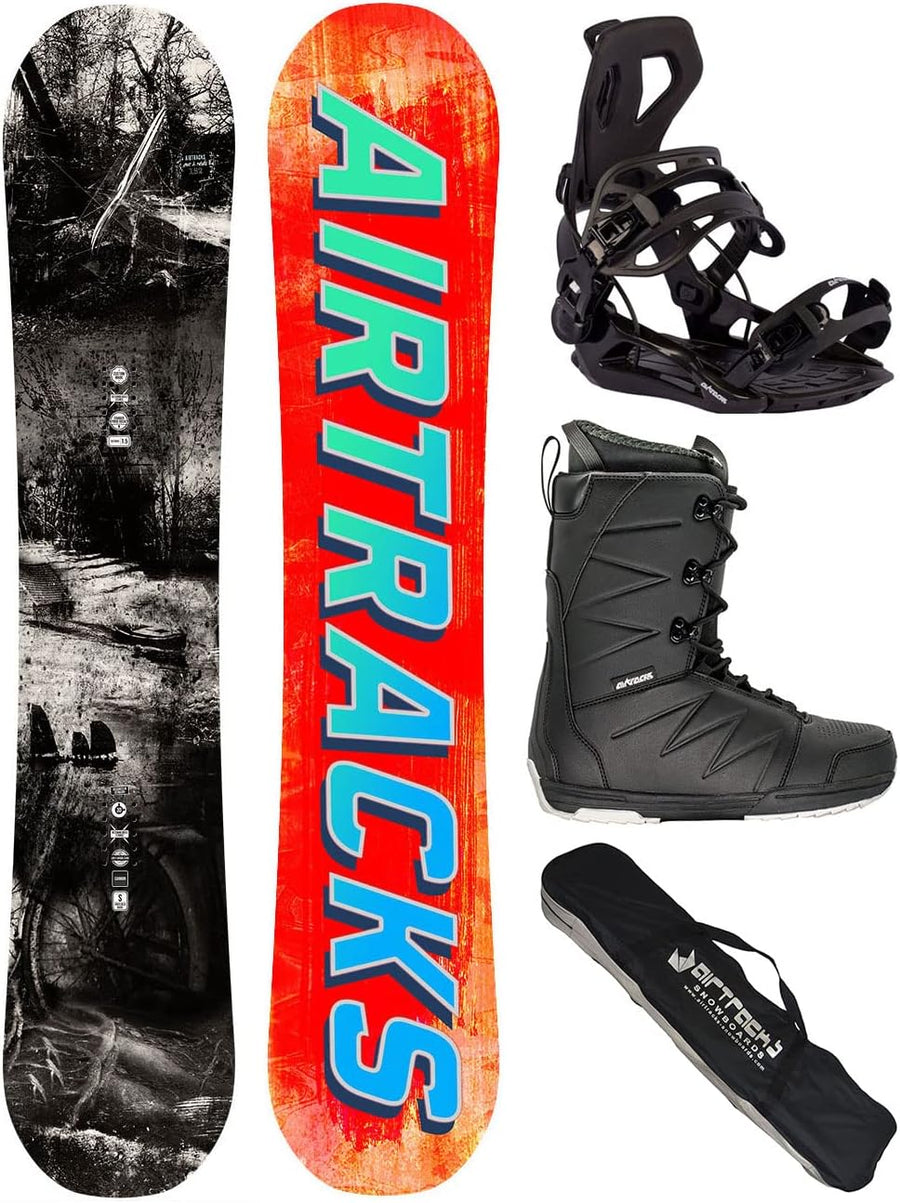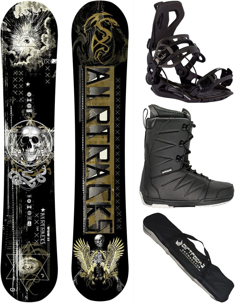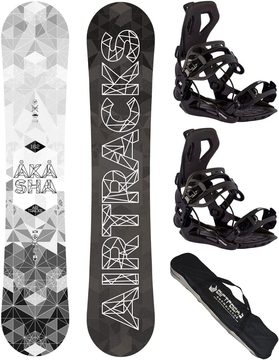 Airtracks Herren Snowboard Set – Akasha Hybrid Rocker Snowboard Wide - Snowboardbindung Master Faste