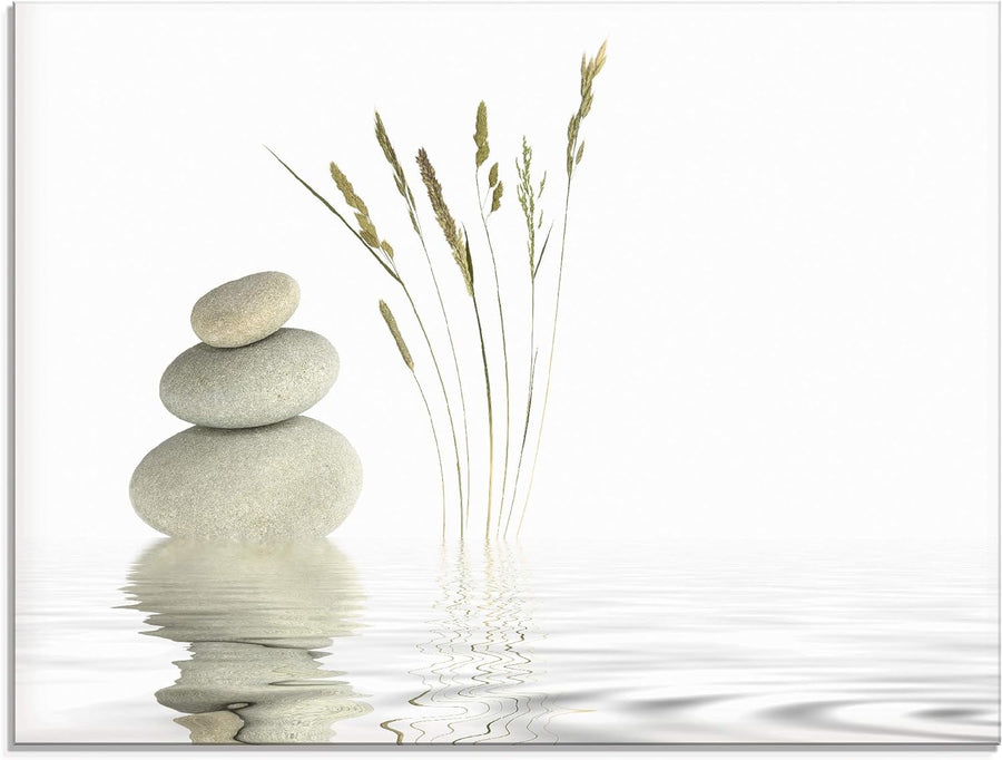 ARTland Glasbilder Wandbild Glas Bild einteilig 80 x 60 cm Weisses Zen Bild mit Steinen, Schilf und