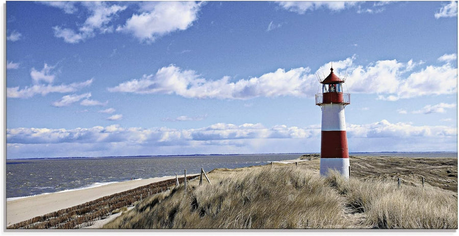 ARTland Glasbilder Wandbild Glas Bild einteilig 60x30 cm Querformat Strand Meer Nordsee Leuchtturm S