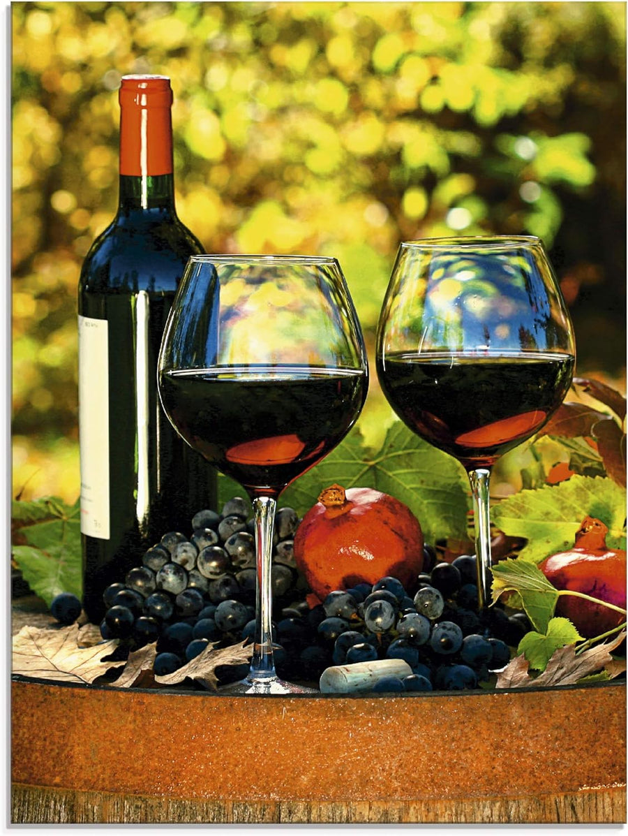 ARTland Glasbilder Wandbild Glas Bild einteilig 60x80 cm Hochformat Toskana Italien Rotwein Früchte