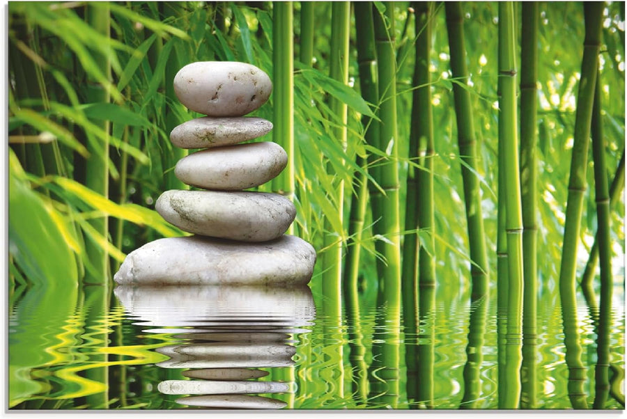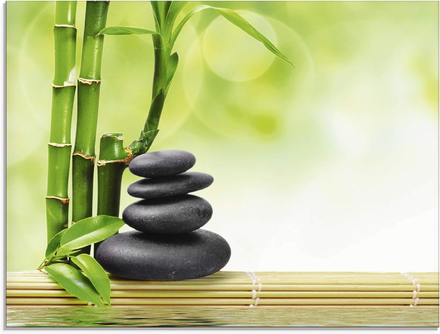 ARTland Glasbilder Wandbild Glas Bild einteilig 80 x 60 cm Wellness Zen Garten Pflanzen Bambus Wasse
