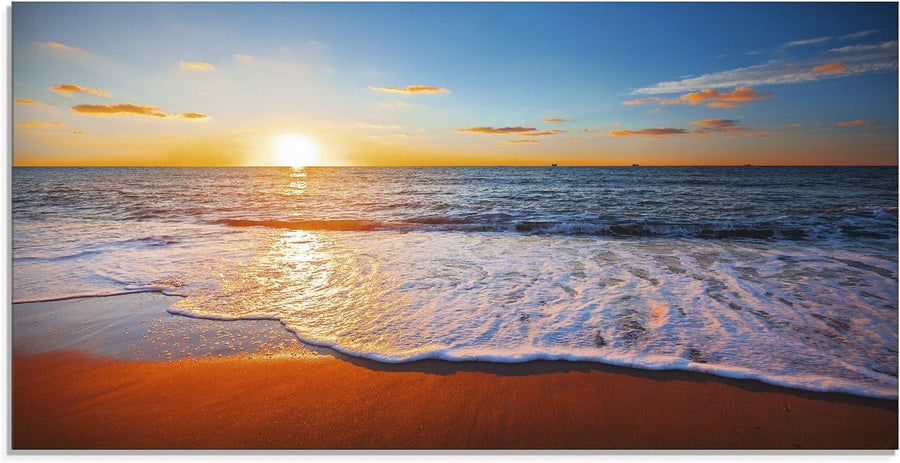 ARTland Glasbilder Wandbild Glas Bild einteilig 60x30 cm Querformat Strand Meer Küste Nordsee Sonnen