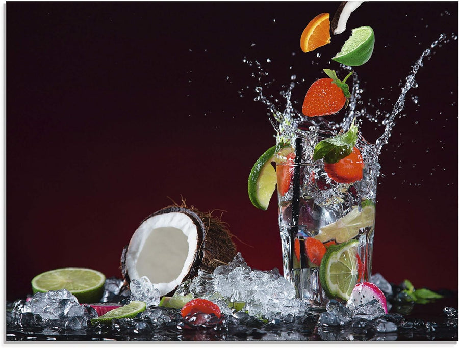 ARTland Glasbilder Wandbild Glas Bild einteilig 80x60 cm Querformat Früchte im Wasser Cocktails Fruc