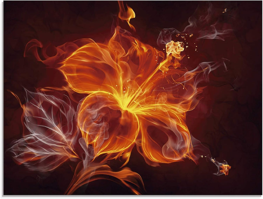 ARTland Glasbilder Wandbild Glas Bild einteilig 80x60 cm Querformat Blumen Feuerblume Feuer Flammen