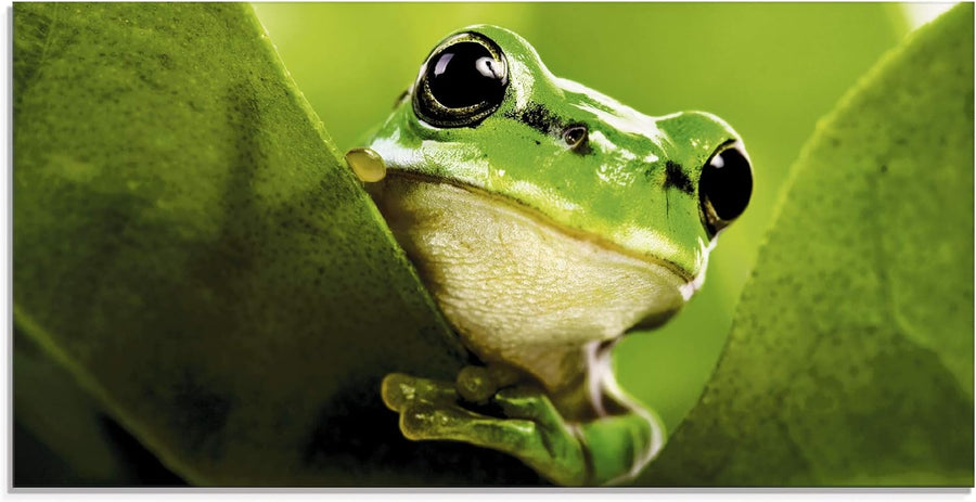 ARTland Glasbilder Wandbild Glas Bild einteilig 60x30 cm Querformat Natur Tiere Frosch Gesicht Laubf