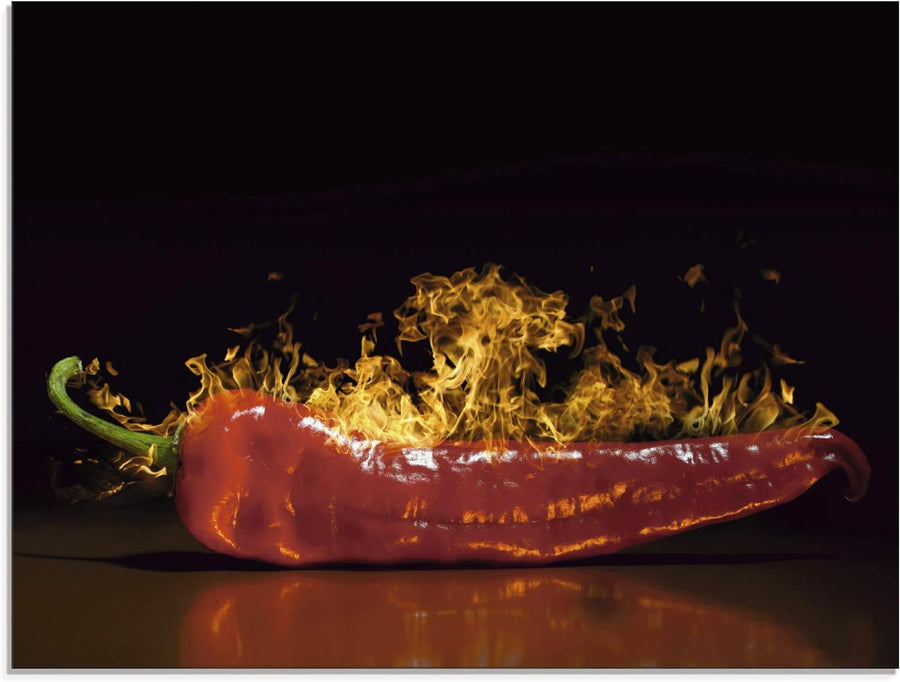 ARTland Glasbilder Wandbild Glas Bild einteilig 80x60 cm Querformat Essen Gewürze Chili Feuer Pepero