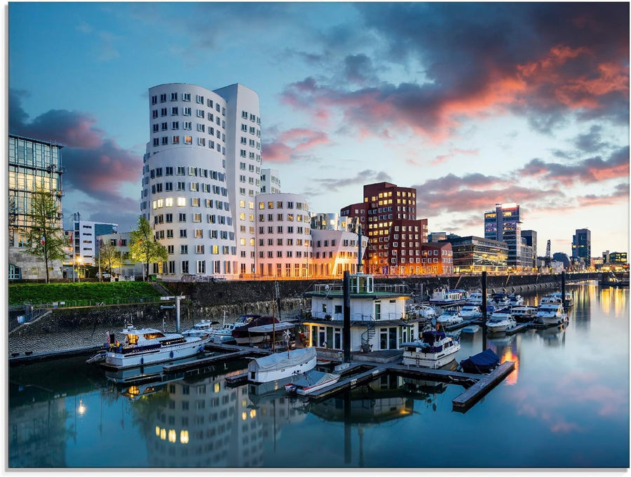 ARTland Glasbilder Wandbild Glas Bild einteilig 80x60 cm Querformat Düsseldorf Medienhafen Syline Mo