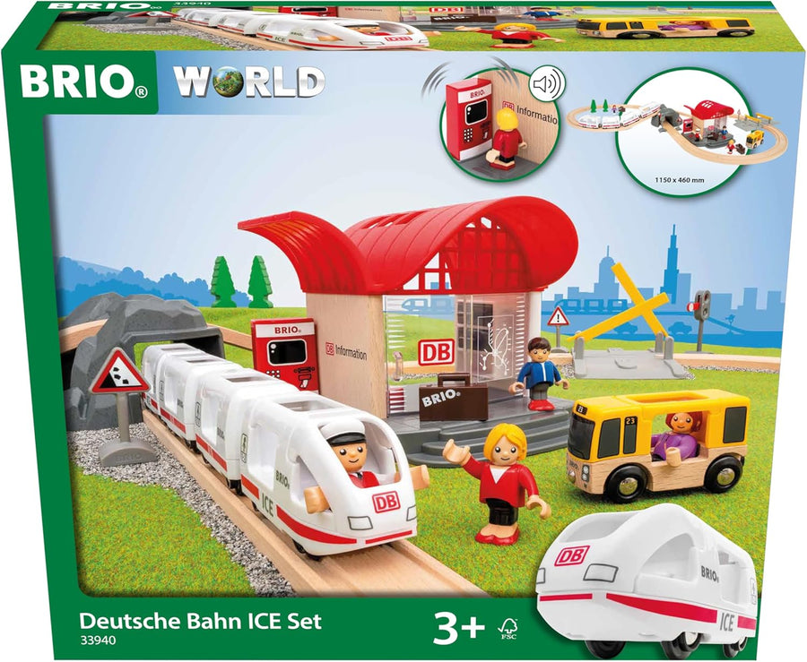 BRIO World 33940 BRIO Deutsche Bahn Ice Set - Eisenbahn-Set mit Schienen, Bahnhof und Zug im Stil de