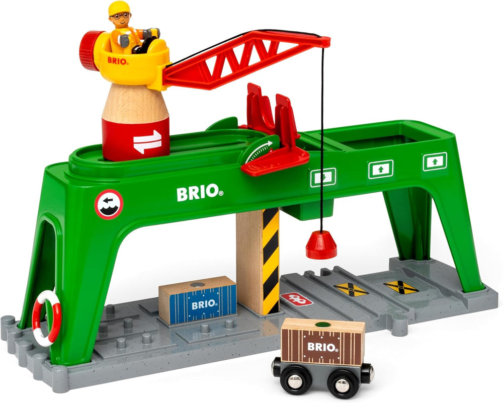 BRIO World 33996 Bahn Verlade Terminal - Mit beweglichem Kran zum Umladen von Gütern auf die Schiene