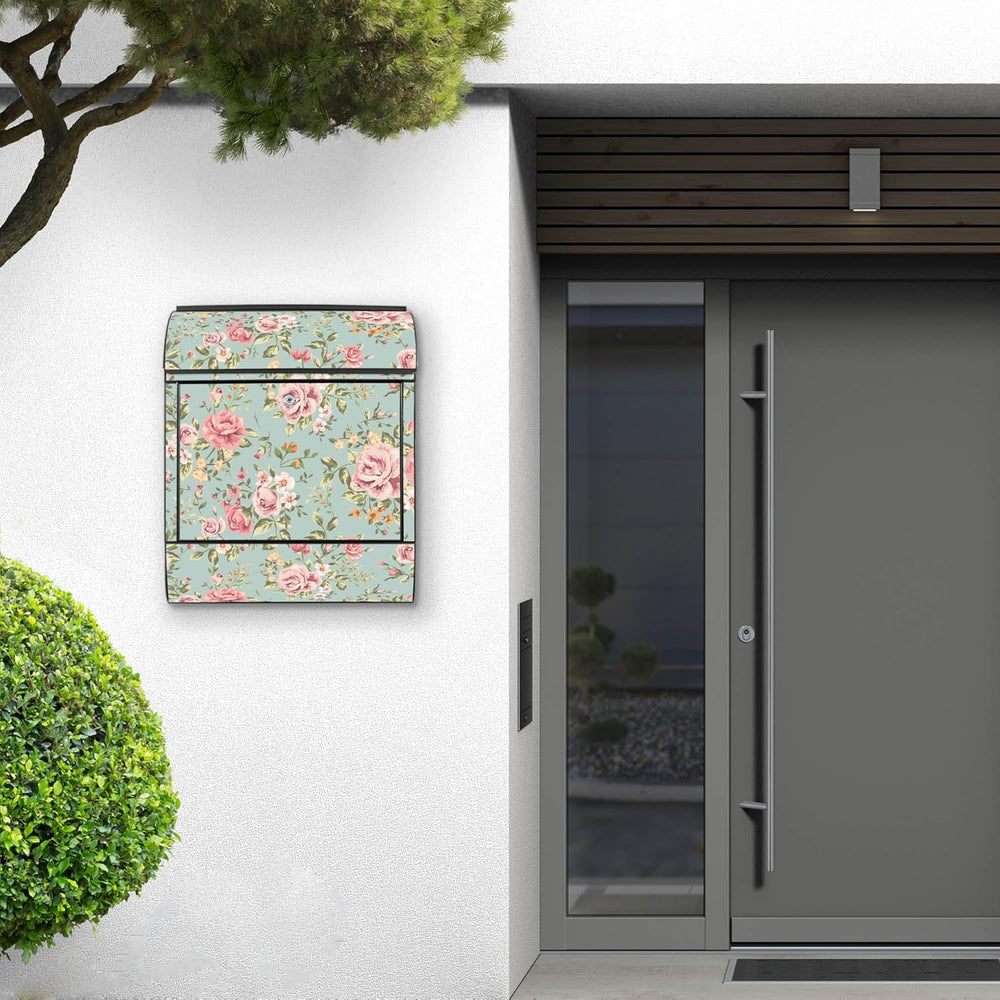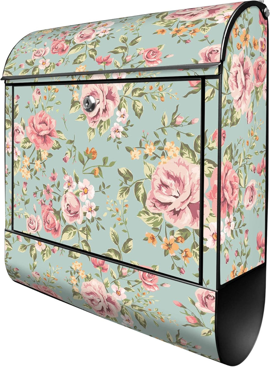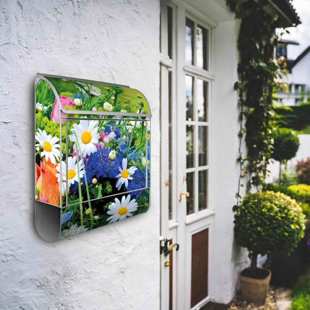 banjado® Design Briefkasten mit Motiv Blumenstrauss 39x47x14cm & 2 Schlüssel - Briefkasten Stahl sch