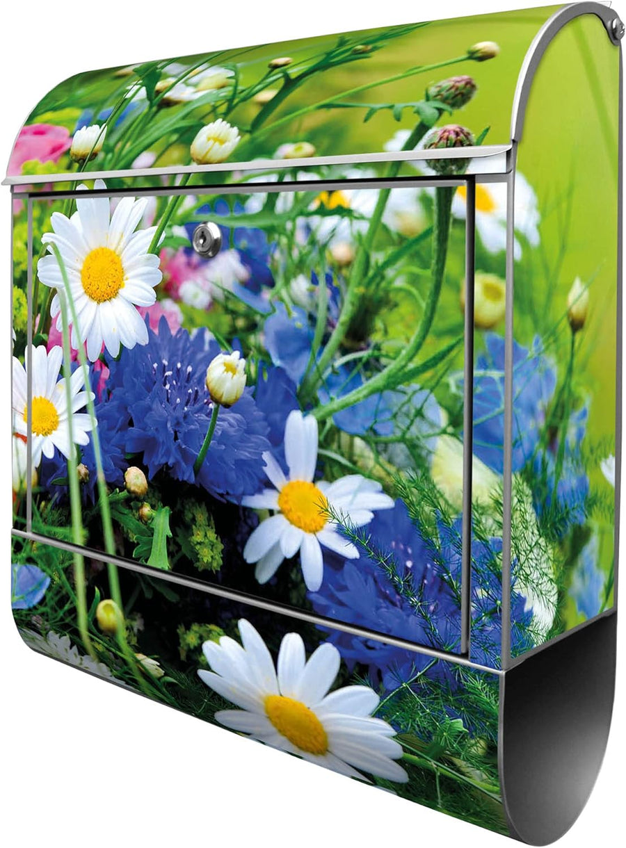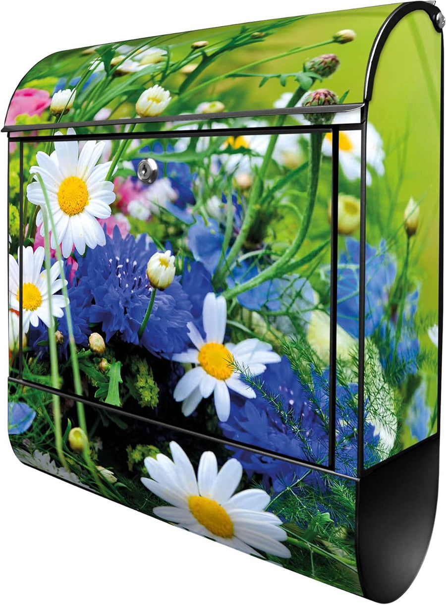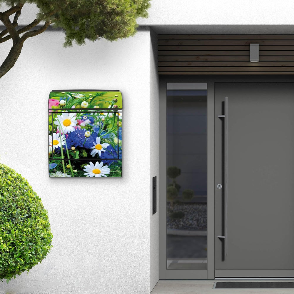 banjado® Design Briefkasten mit Motiv Blumenstrauss 39x47x14cm & 2 Schlüssel - Briefkasten Stahl sch