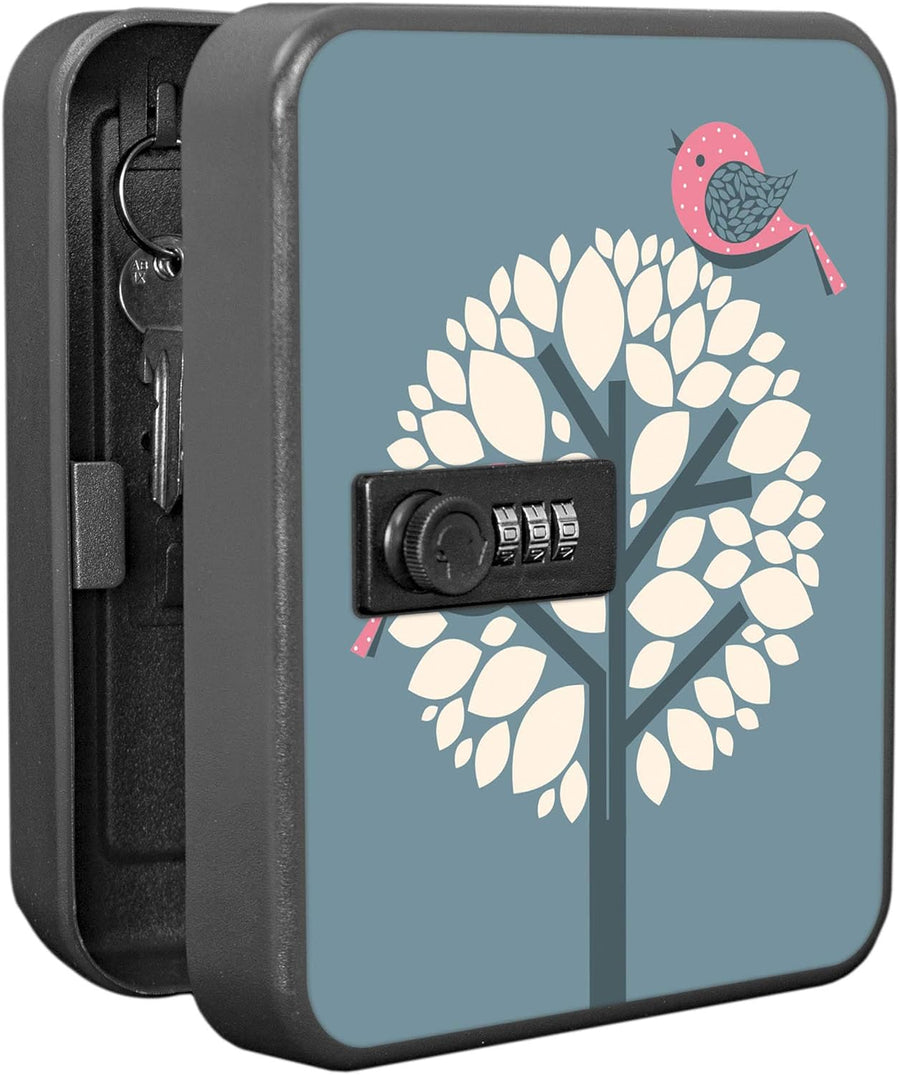 banjado® Burg-Wächter® abschliessbarer Schlüsselkasten mit Motiv Zwei Rosa Vögel für 20 Schlüssel -