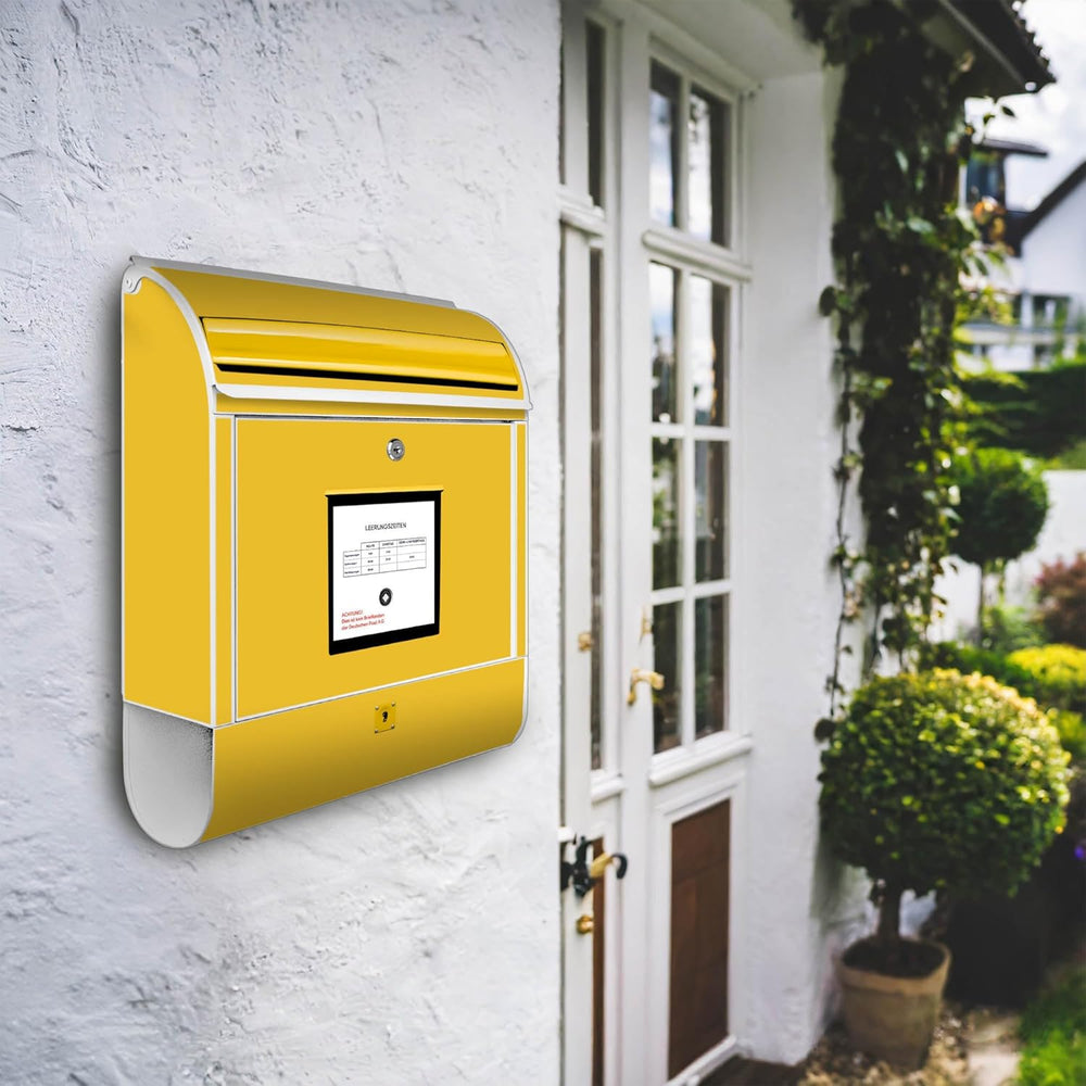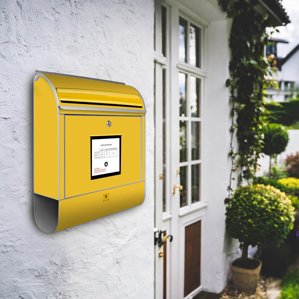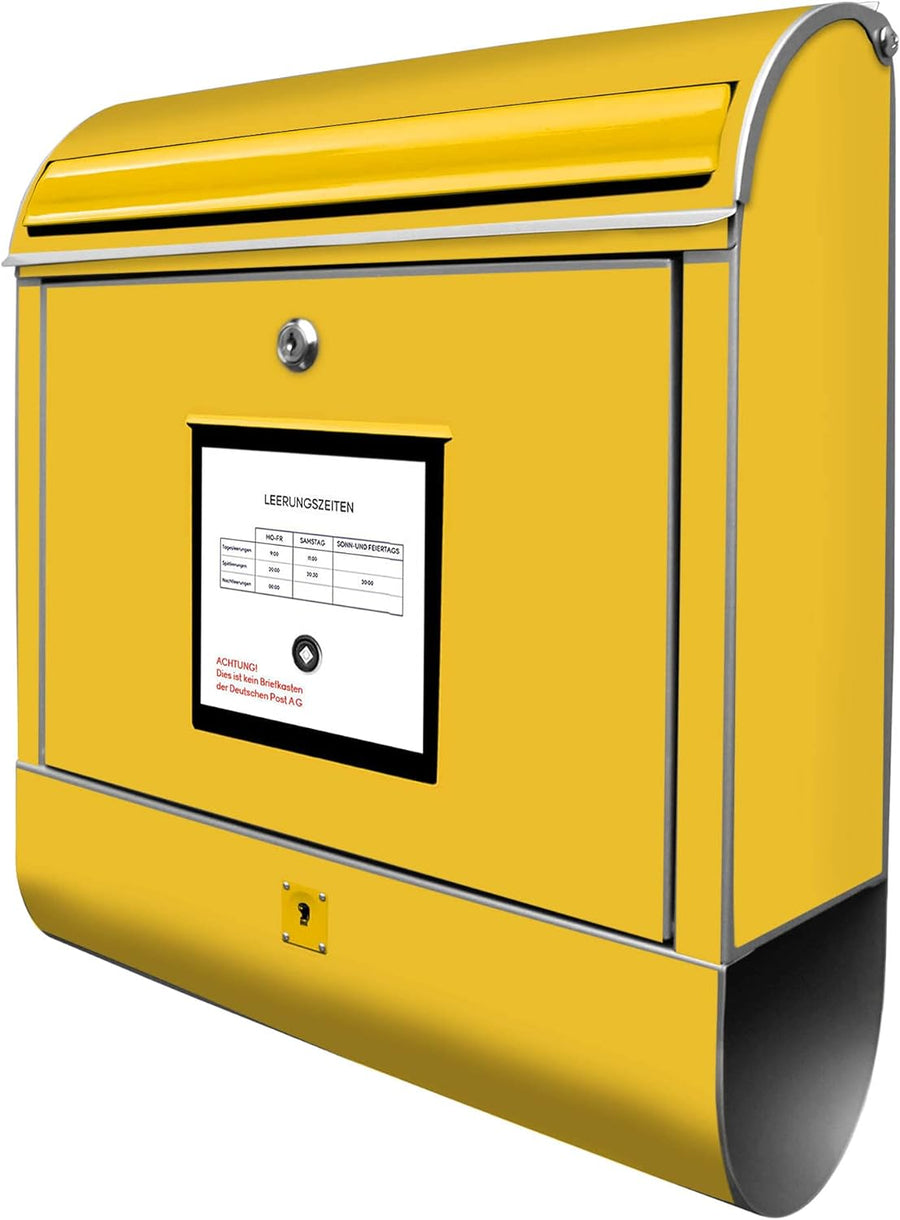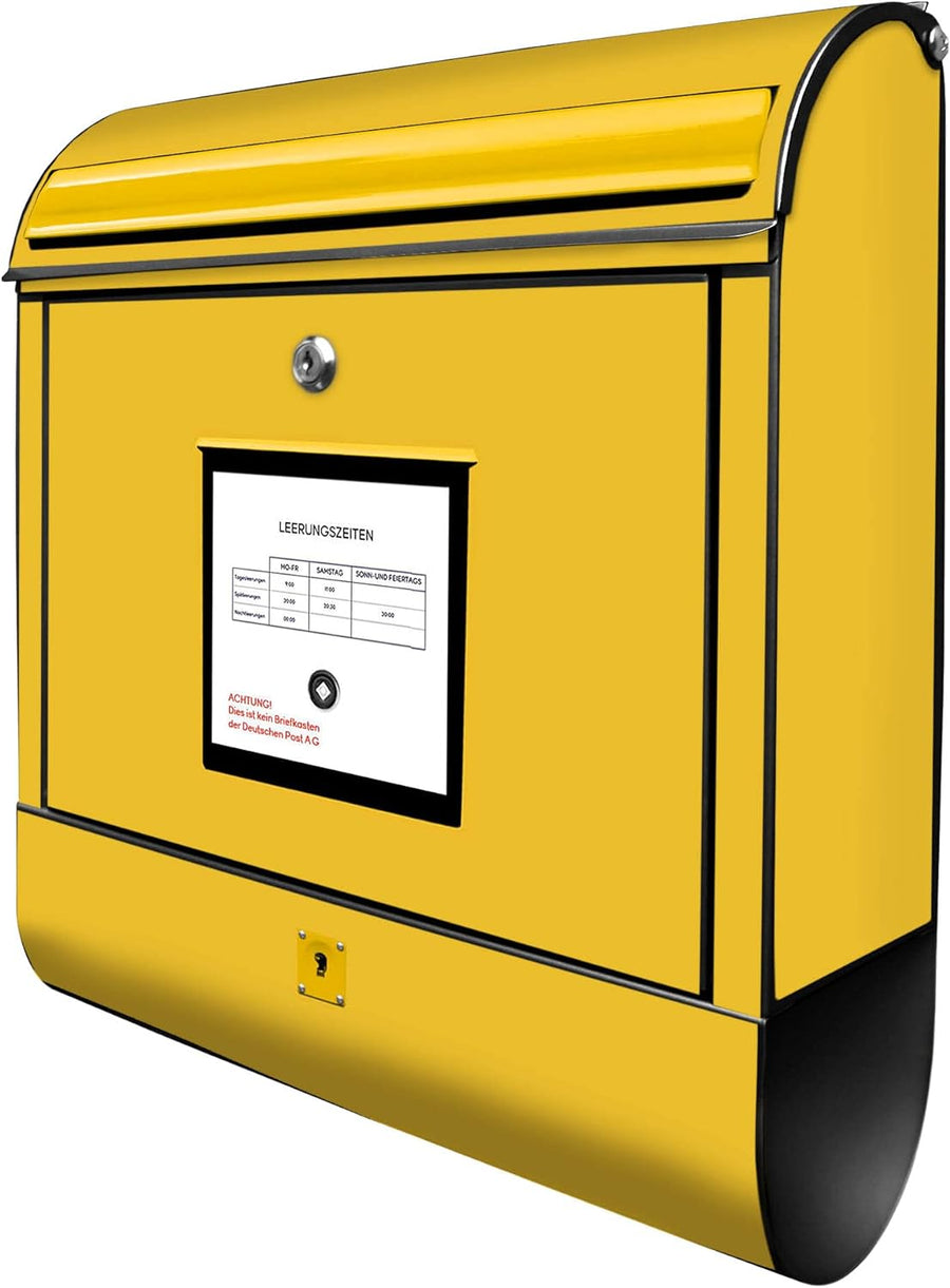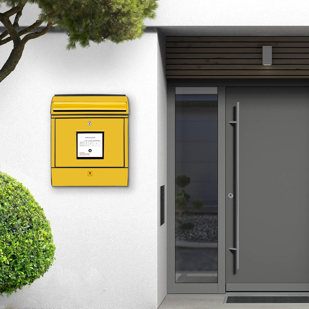 banjado® Design Briefkasten mit Motiv Briefkasten Gelb 39x47x14cm & 2 Schlüssel - Briefkasten Stahl