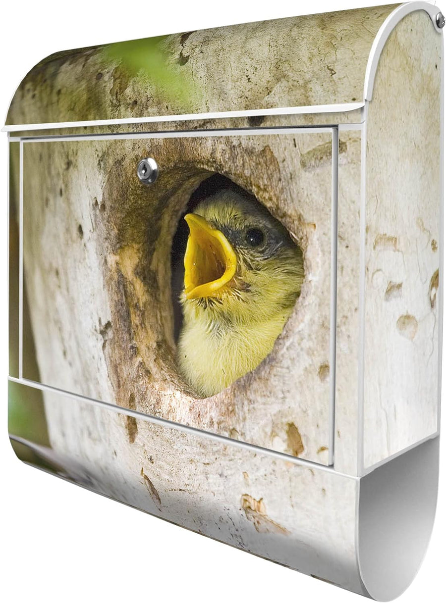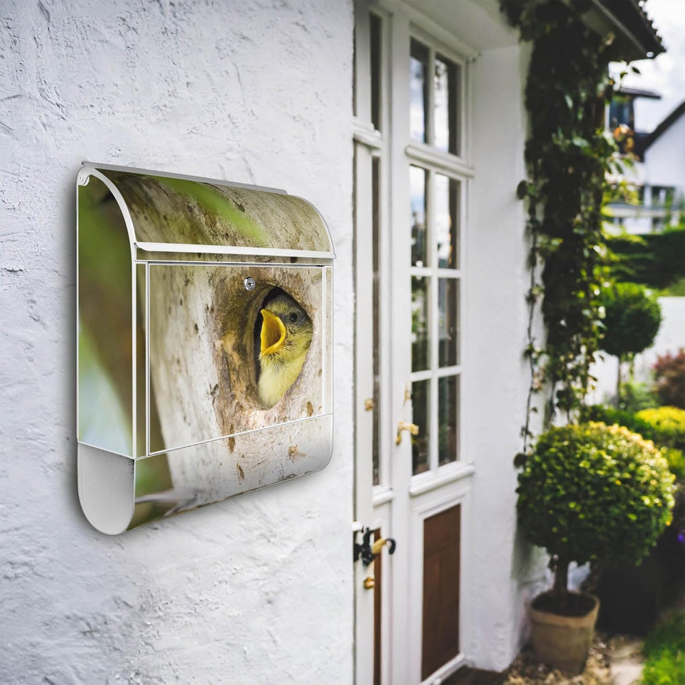 banjado® Design Briefkasten mit Motiv Blaumeise 39x47x14cm & 2 Schlüssel - Briefkasten Stahl weiss m