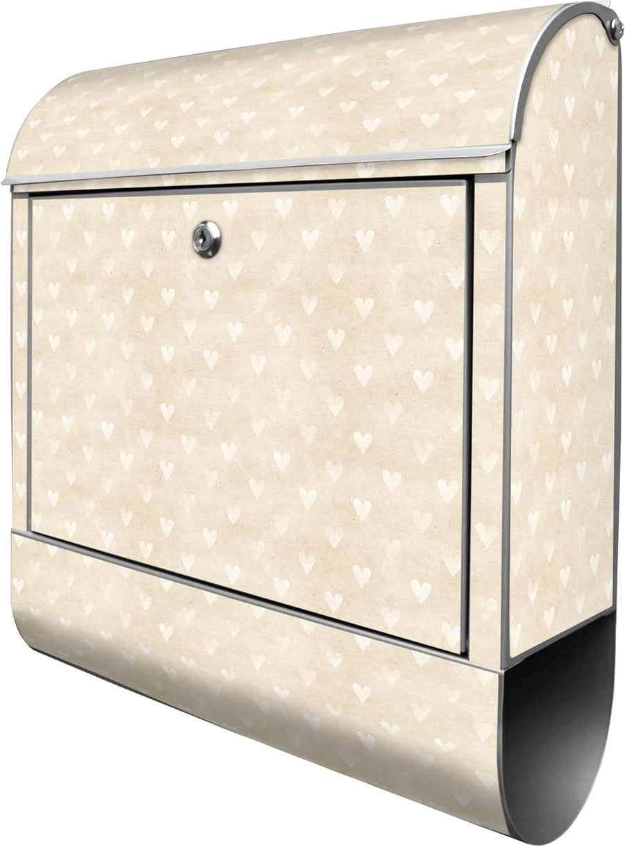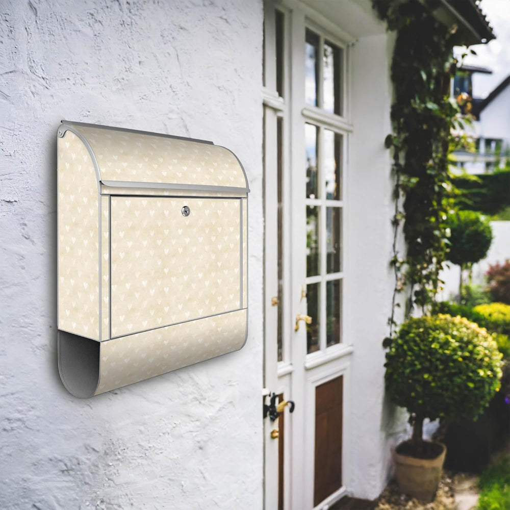 banjado® Design Briefkasten mit Motiv Beige Herzen 39x47x14cm & 2 Schlüssel - Briefkasten Stahl Silb
