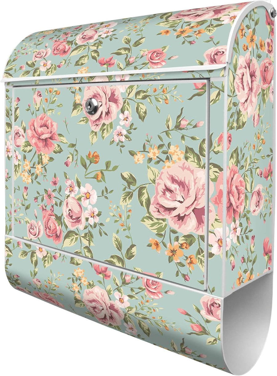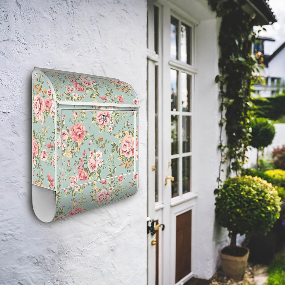 banjado® Design Briefkasten mit Motiv Altrosa Blume 39x47x14cm & 2 Schlüssel - Briefkasten Stahl wei