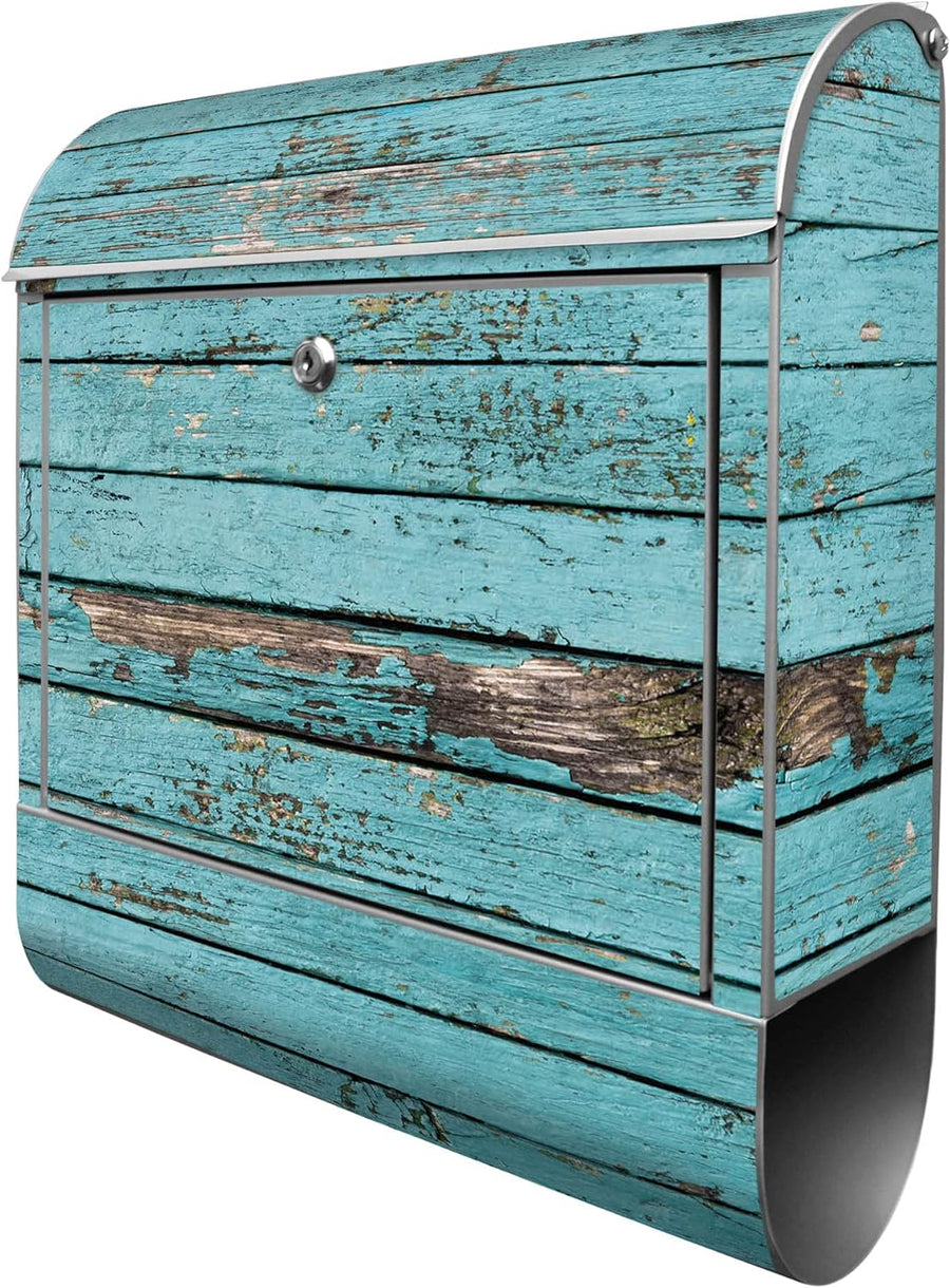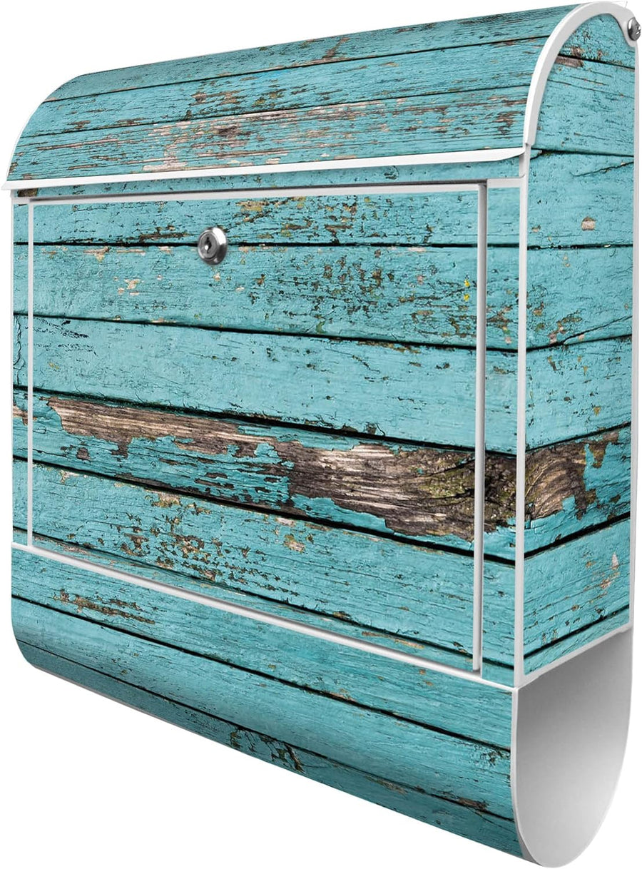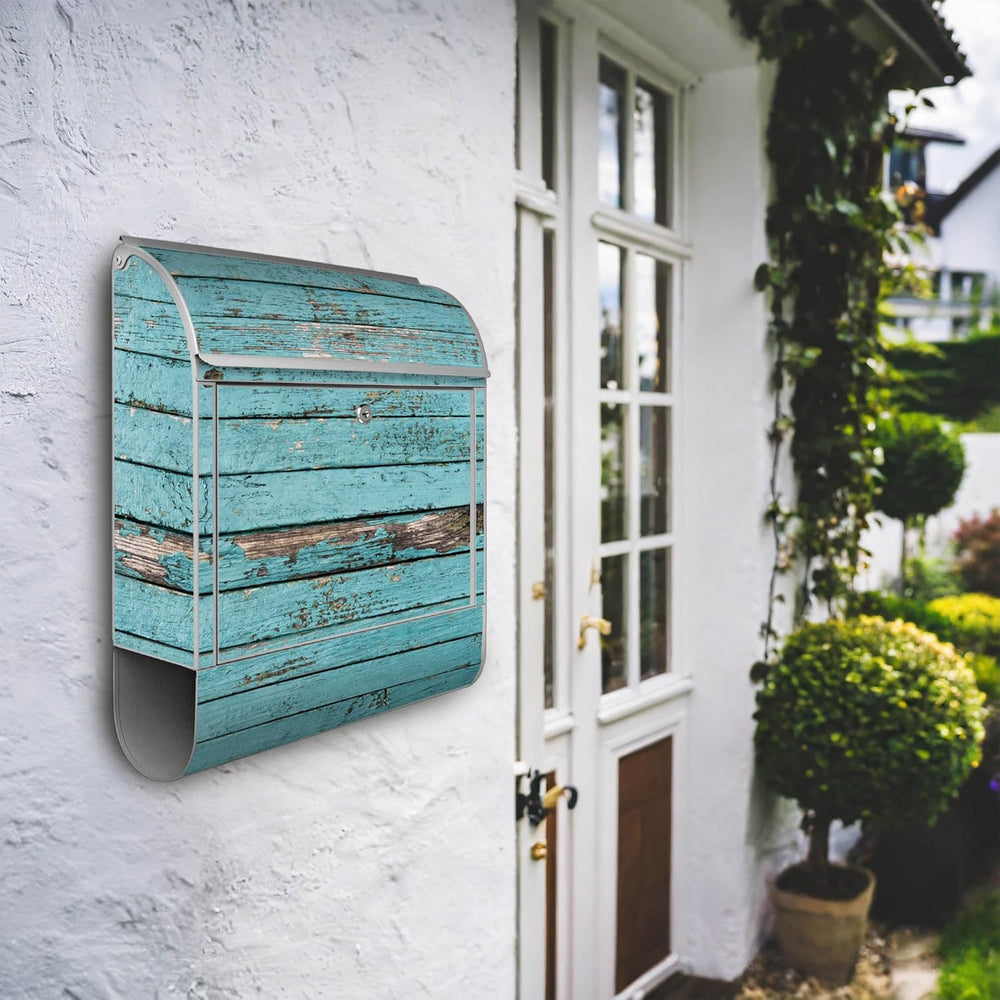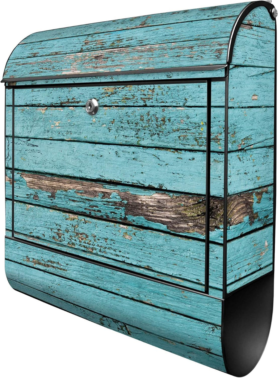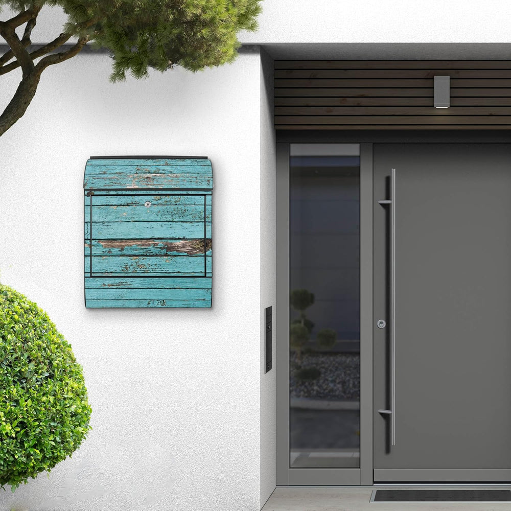 banjado® Design Briefkasten mit Motiv Blaue Holzlatten 39x47x14cm & 2 Schlüssel - Briefkasten Stahl