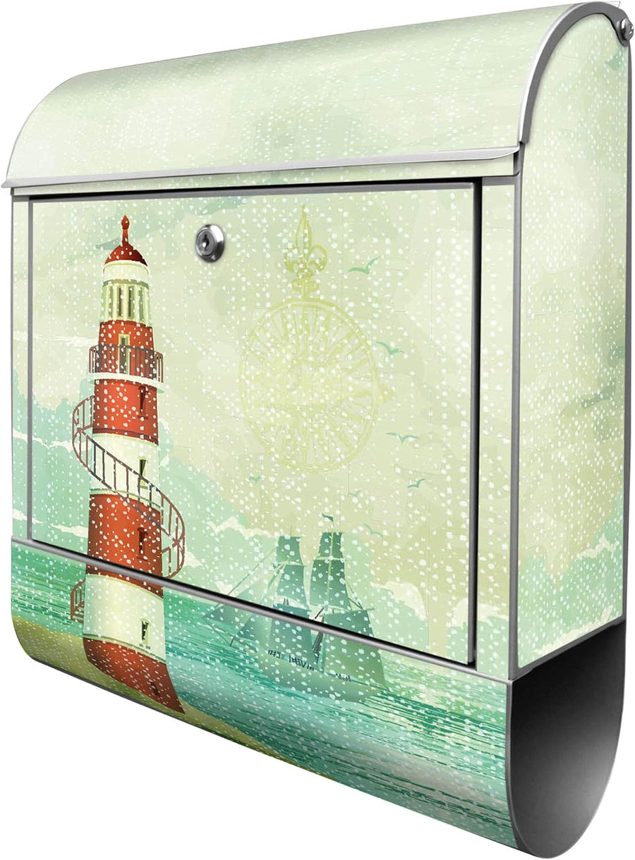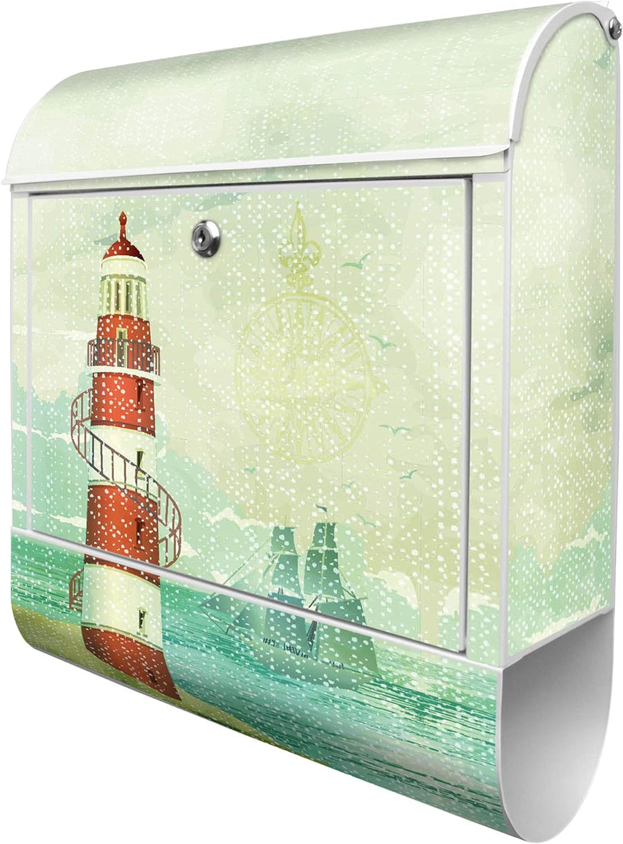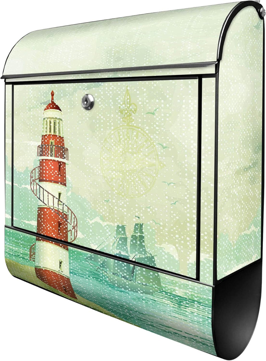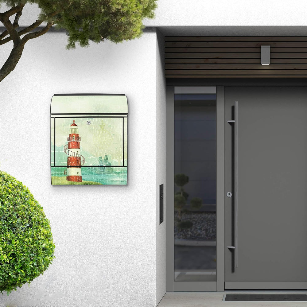 banjado® Design Briefkasten mit Motiv Alter Leuchtturm 39x47x14cm & 2 Schlüssel - Briefkasten Stahl
