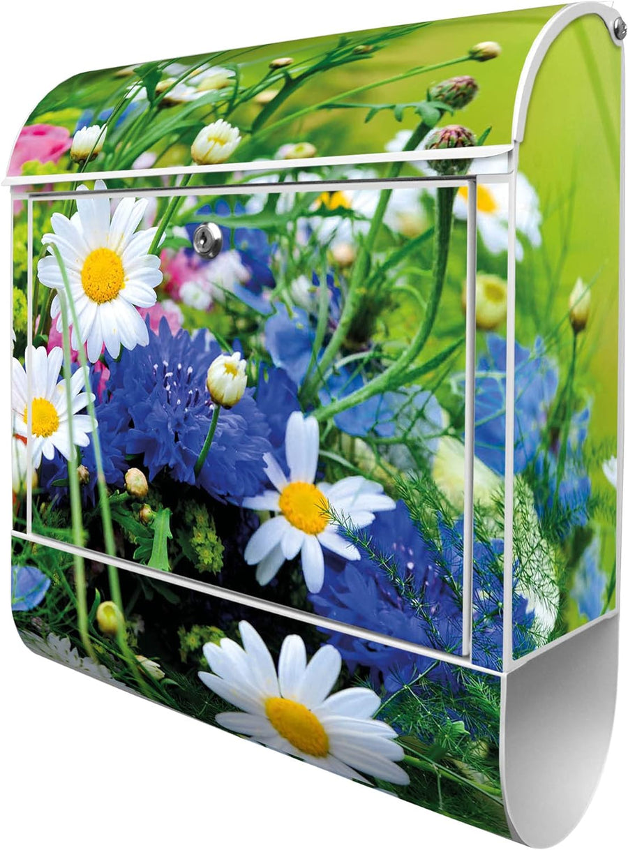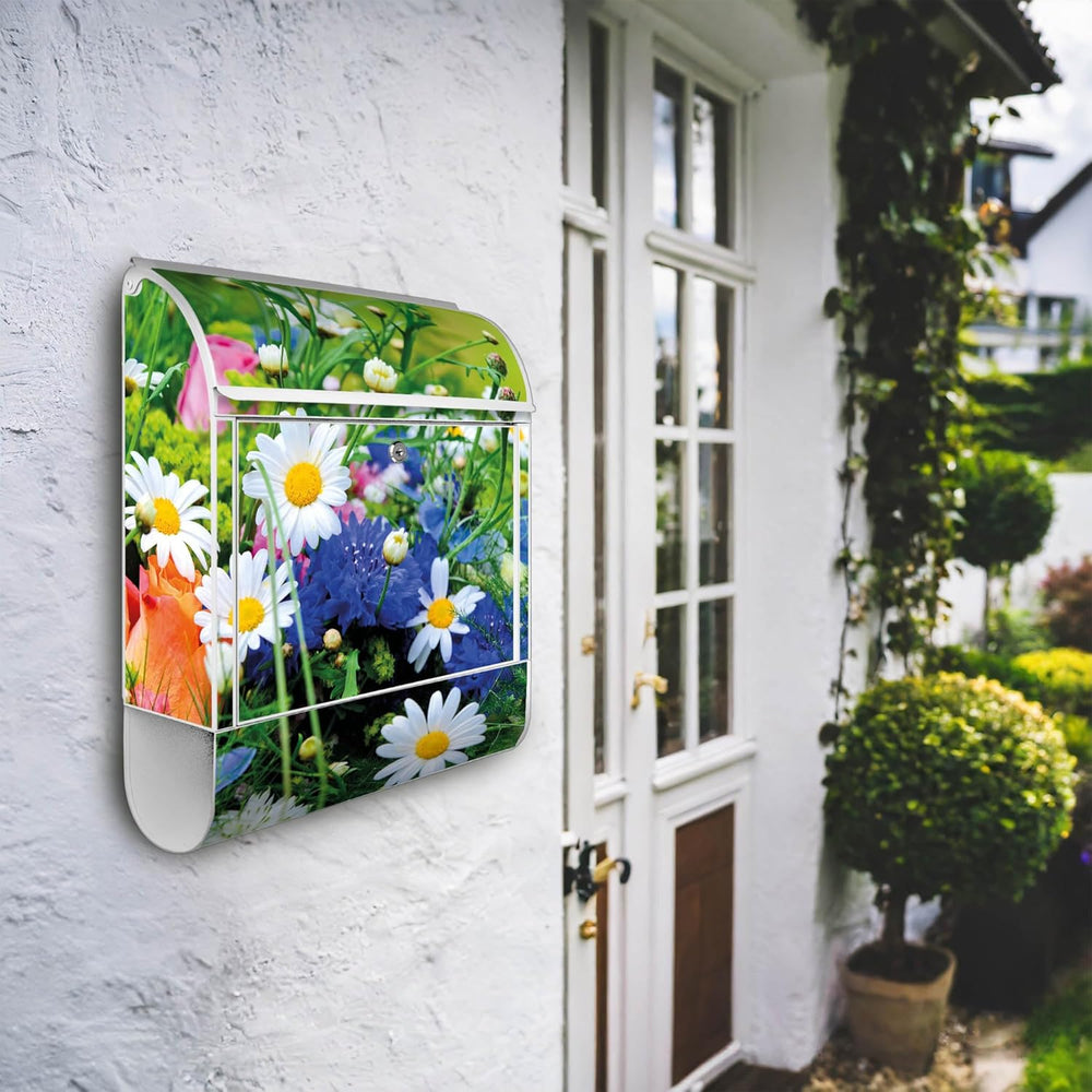 banjado® Design Briefkasten mit Motiv Blumenstrauss 39x47x14cm & 2 Schlüssel - Briefkasten Stahl wei