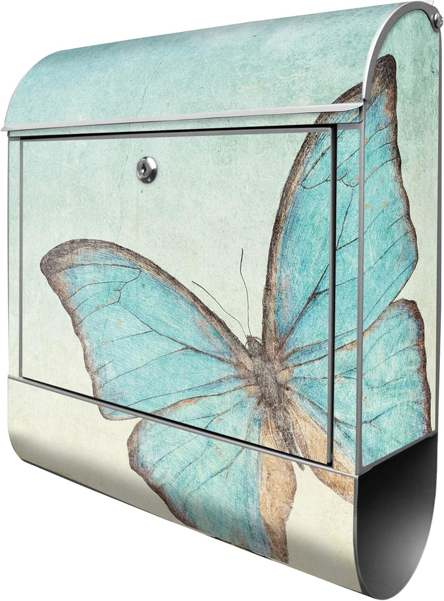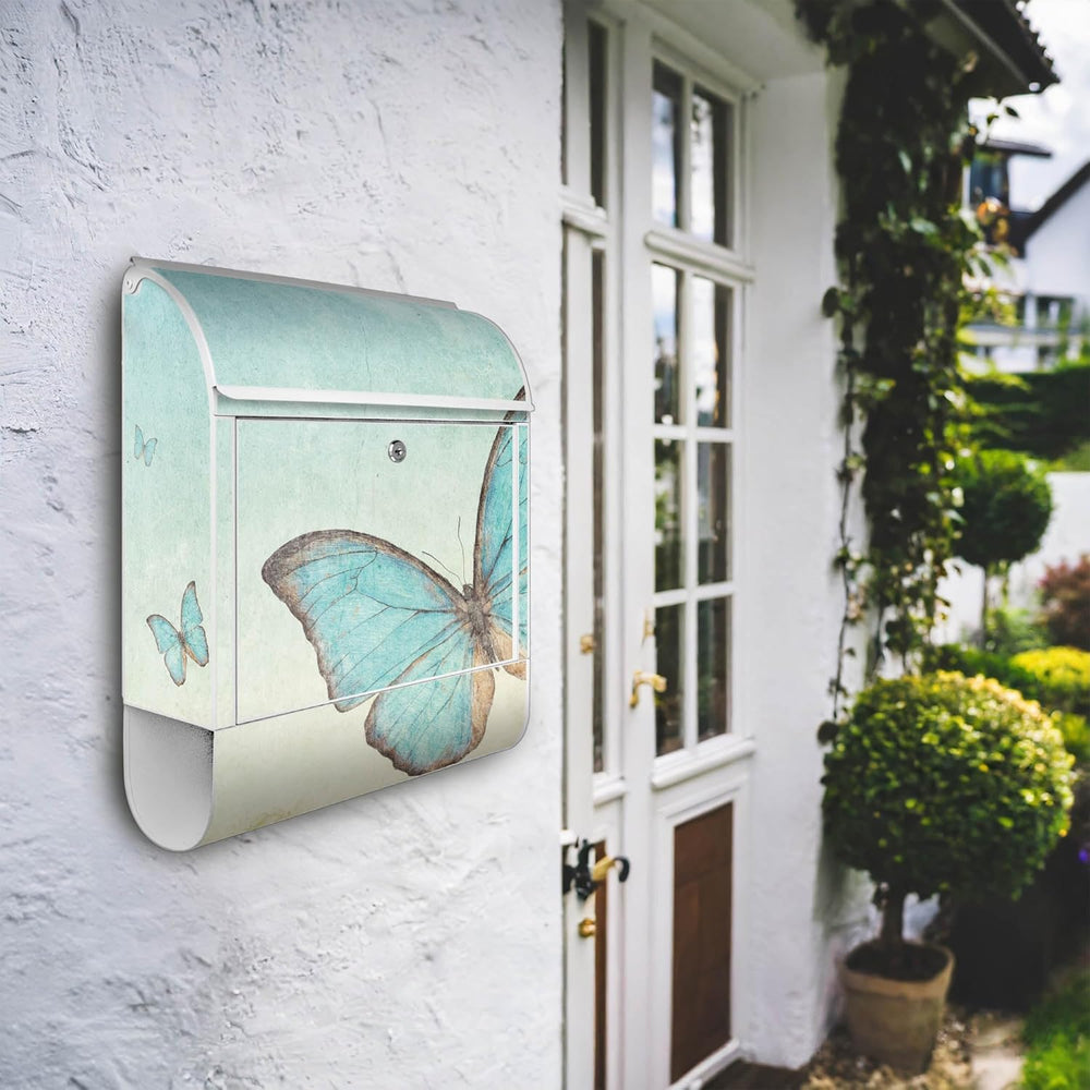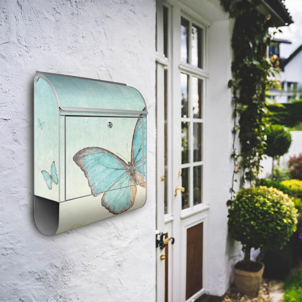 banjado® Design Briefkasten mit Motiv Blaue Schmetterlinge 39x47x14cm & 2 Schlüssel - Briefkasten St