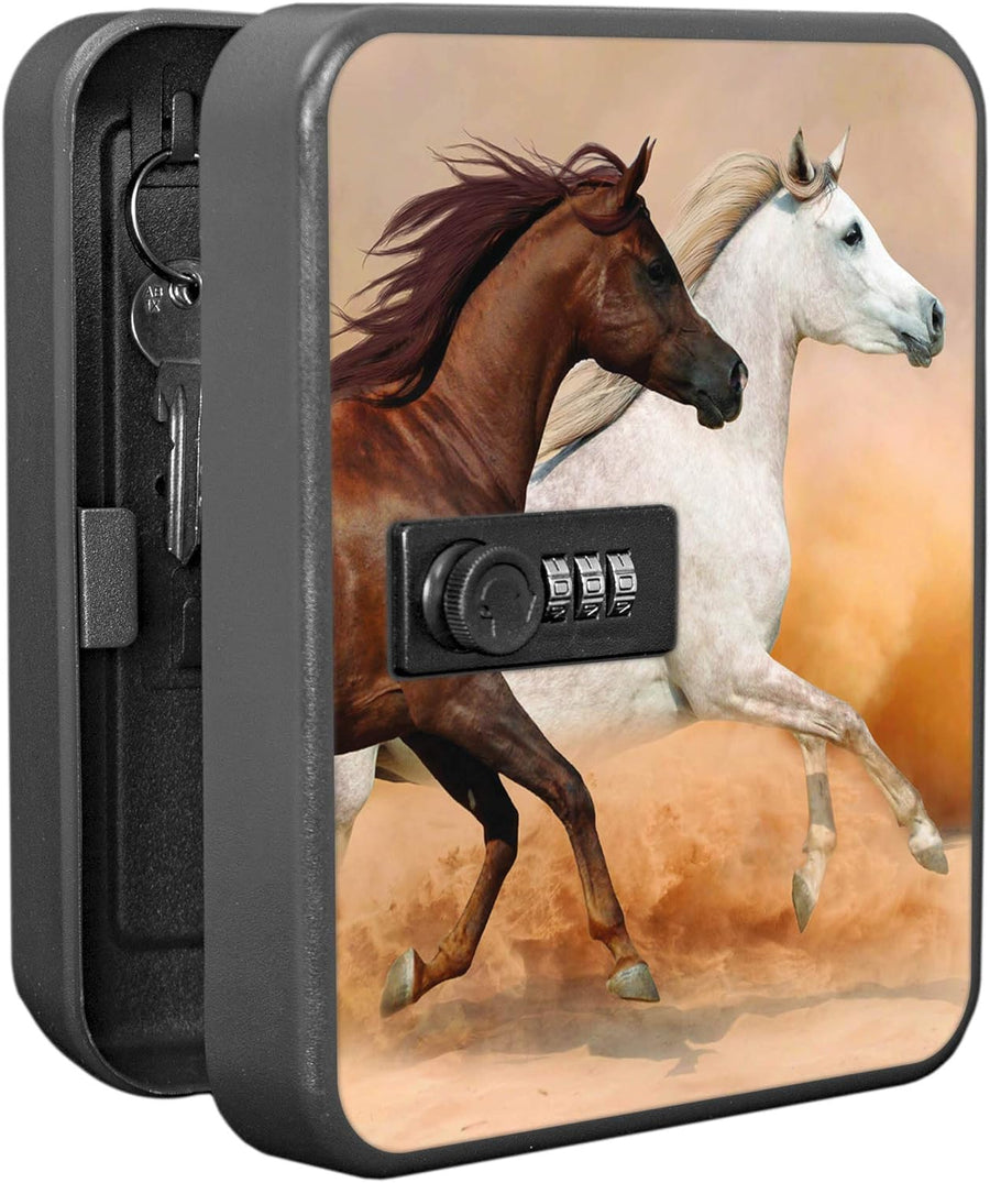 banjado® Burg-Wächter® abschliessbarer Schlüsselkasten mit Motiv Wilde Pferde für 20 Schlüssel - Sch