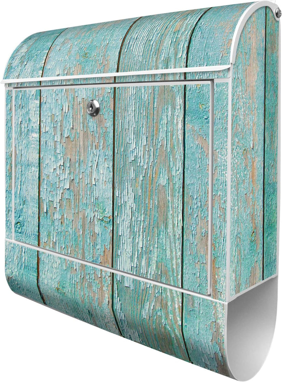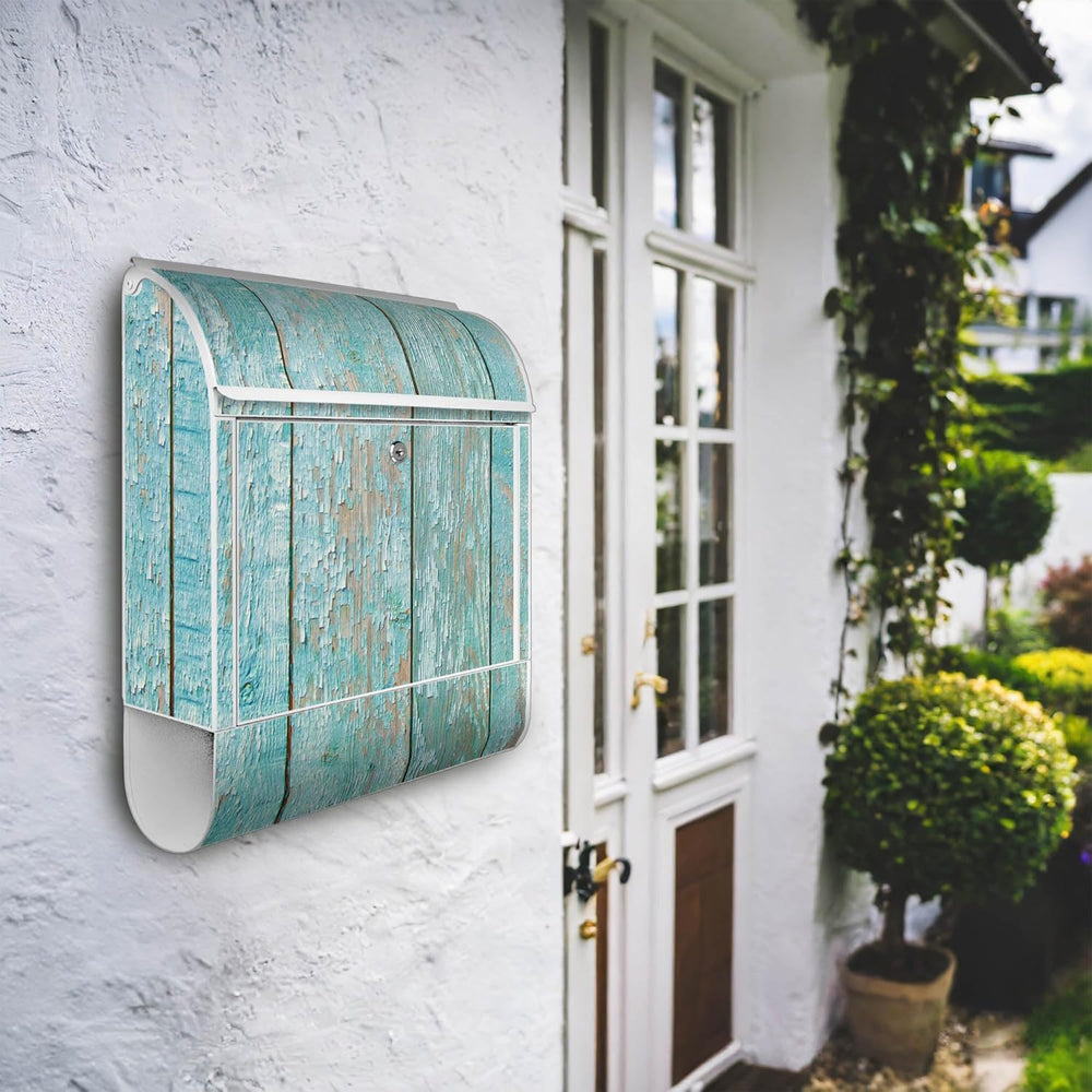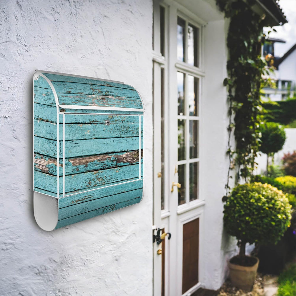 banjado® Design Briefkasten mit Motiv Blaue Planken 39x47x14cm & 2 Schlüssel - Briefkasten Stahl wei