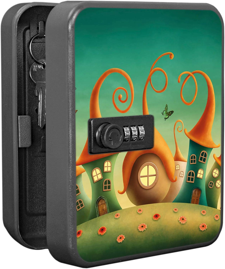 banjado® Burg-Wächter® abschliessbarer Schlüsselkasten mit Motiv Zwergenhausen für 20 Schlüssel - Sc