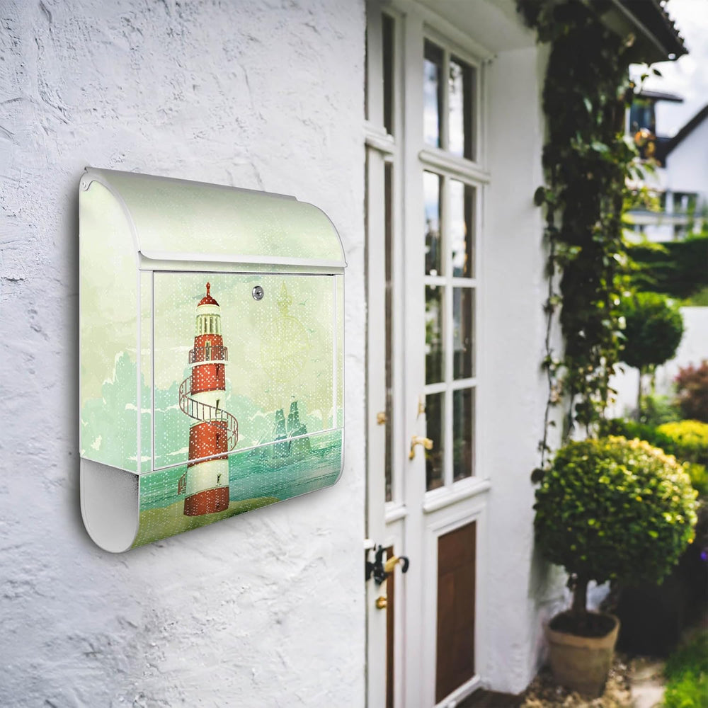 banjado® Design Briefkasten mit Motiv Alter Leuchtturm 39x47x14cm & 2 Schlüssel/Briefkasten Stahl we