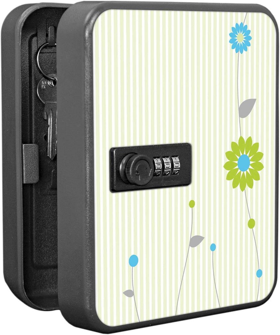 banjado® Burg-Wächter® abschliessbarer Schlüsselkasten mit Motiv Zarte Blumen für 20 Schlüssel - Sch