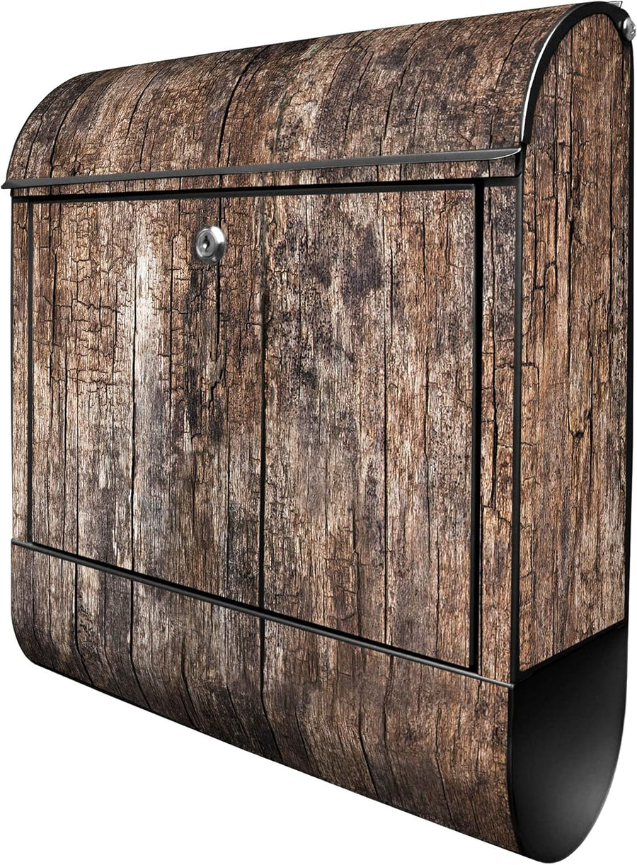 banjado® Design Briefkasten mit Motiv Altes Holz 39x47x14cm & 2 Schlüssel - Briefkasten Stahl schwar
