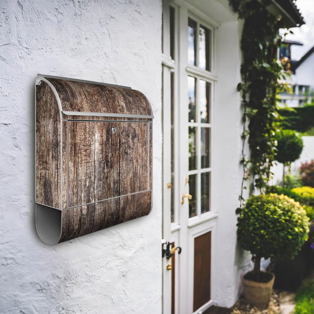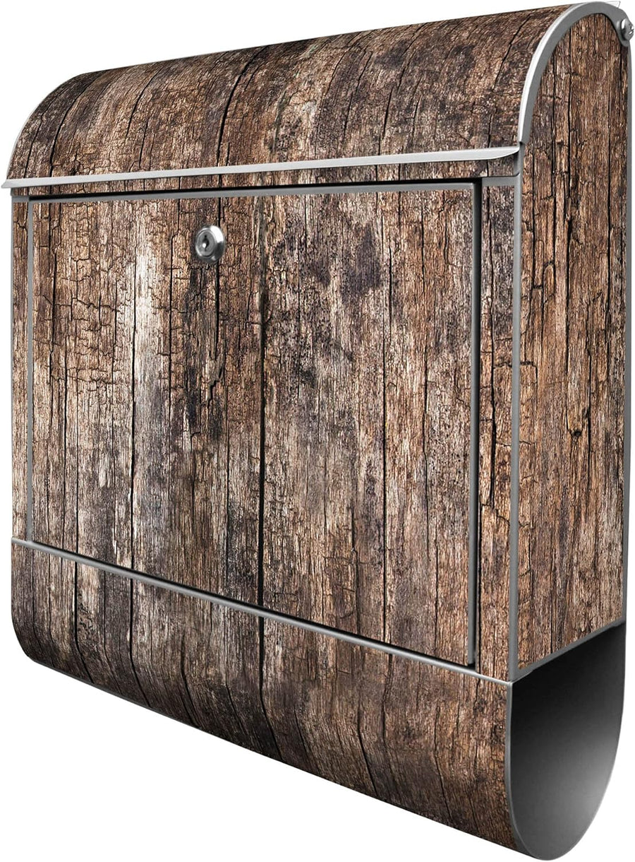 banjado® Design Briefkasten mit Motiv Altes Holz 39x47x14cm & 2 Schlüssel - Briefkasten Stahl Silber