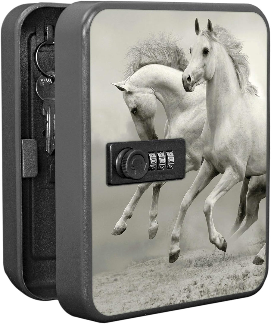 banjado® Burg-Wächter® abschliessbarer Schlüsselkasten mit Motiv Wilde Pferde SW für 20 Schlüssel -