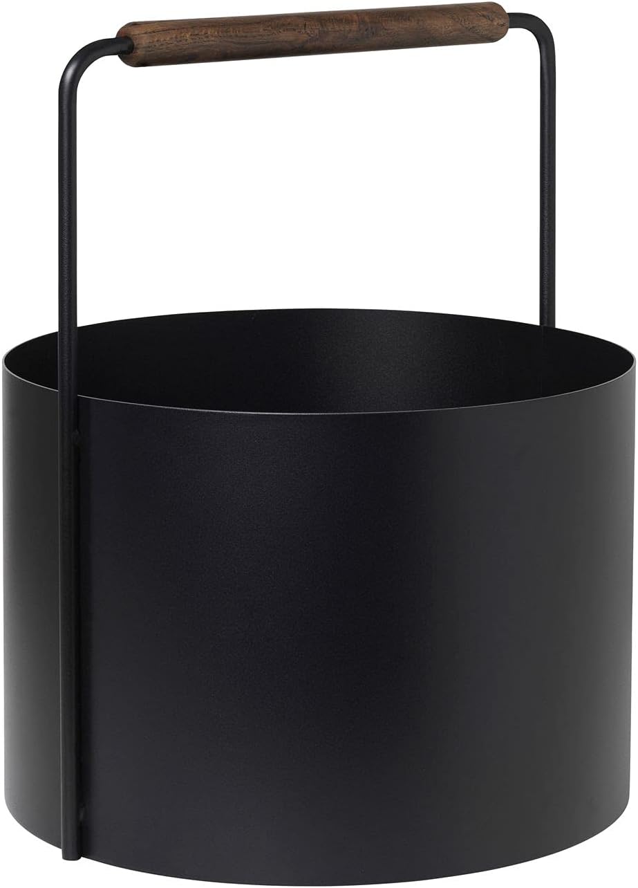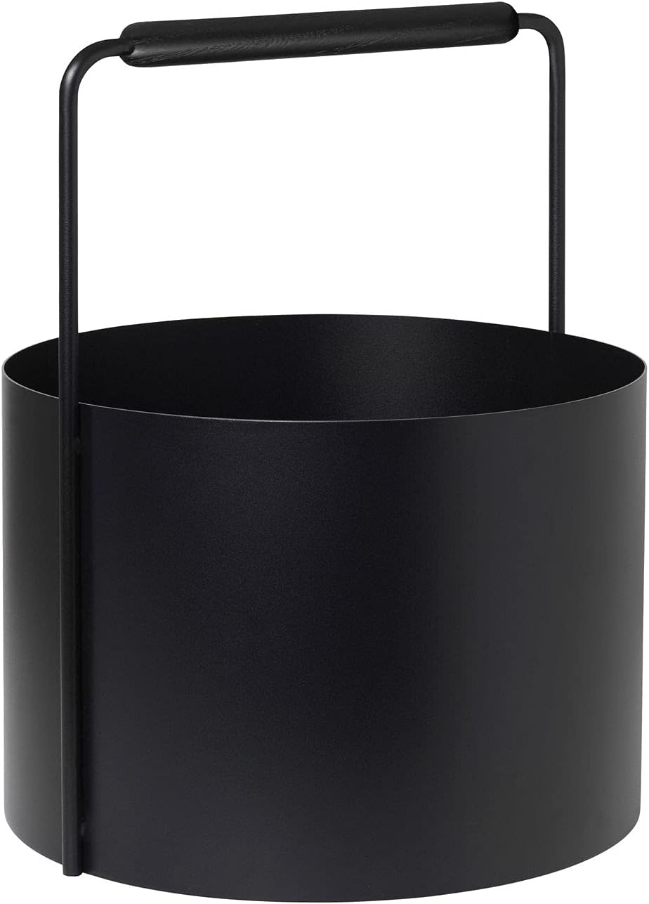 blomus Holzkorb ASHI | Feuerholzkorb mit Griff in Schwarz | 37L x 35B x 45H cm | Karminkorb aus pulv