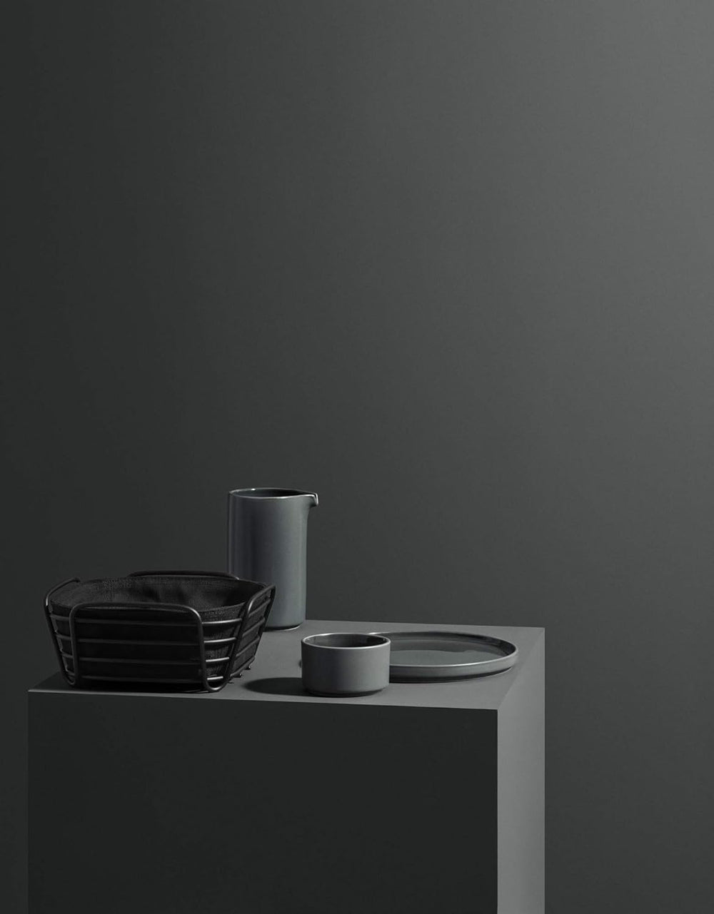Blomus Brotkorb Schwarz S - Brotkörbchen aus pulverbeschichtetem Stahl und Baumwoll-Stofftasche, S: