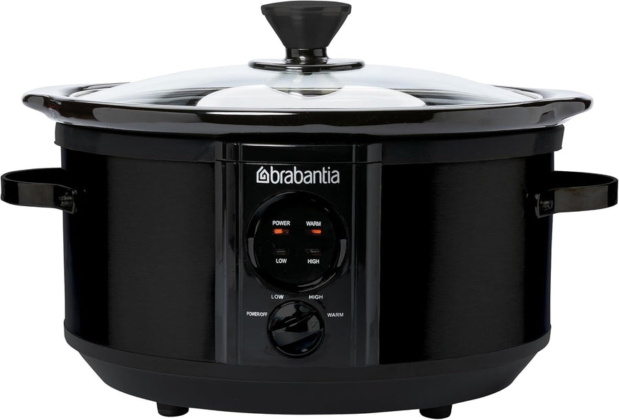 Brabantia Slow Cooker, 3,5 Liter (3-4 Personen), Entnehmbare Keramikschale & Glasdeckel, 3 Temperatu