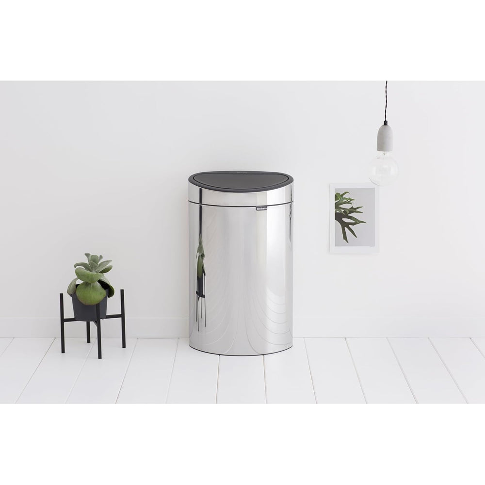 Brabantia Touch Bin New mit herausnehmbaren Kunststoffeinsatz, 40L, Edelstahl, Brilliant Steel, 32.8